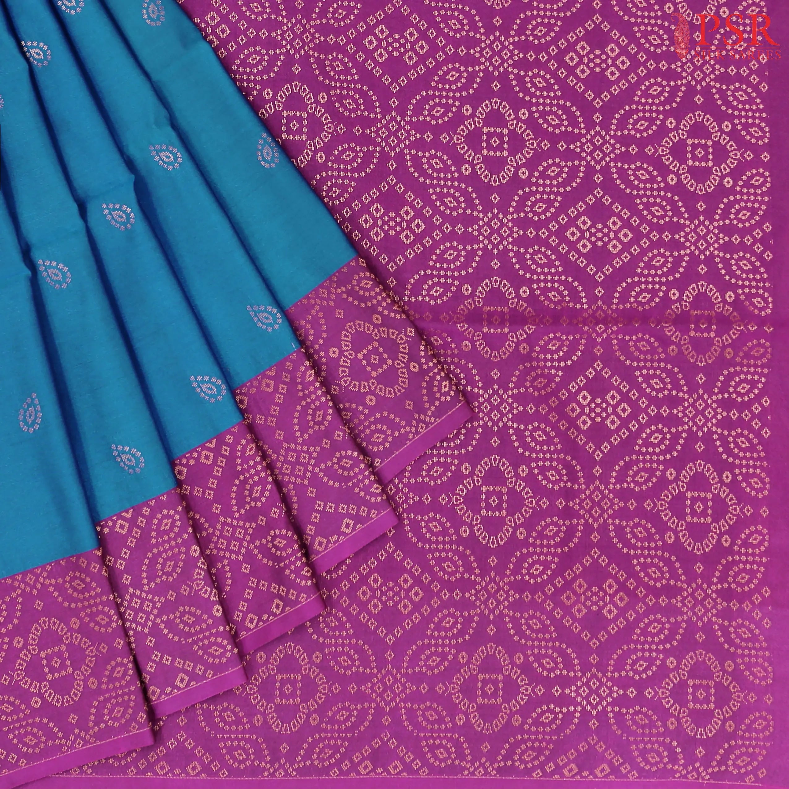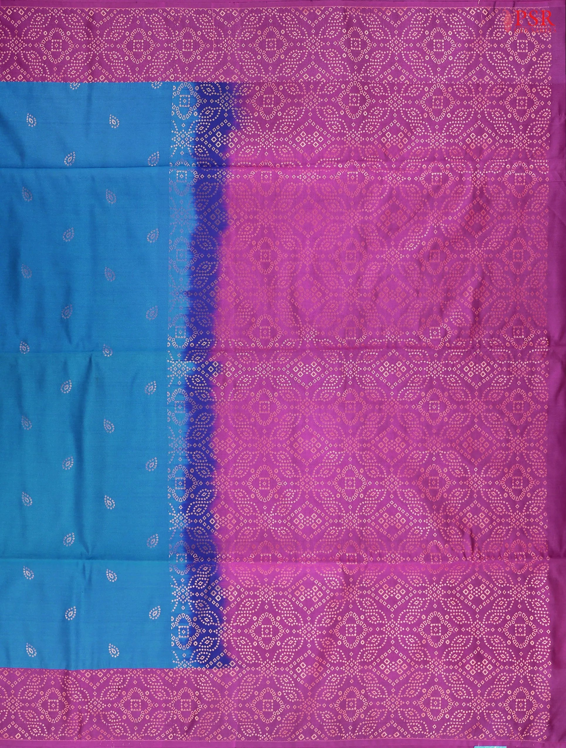 PSR Silk Sarees presents a Peacock Blue Soft Art Silk Saree with combination of Fandango Purple color.