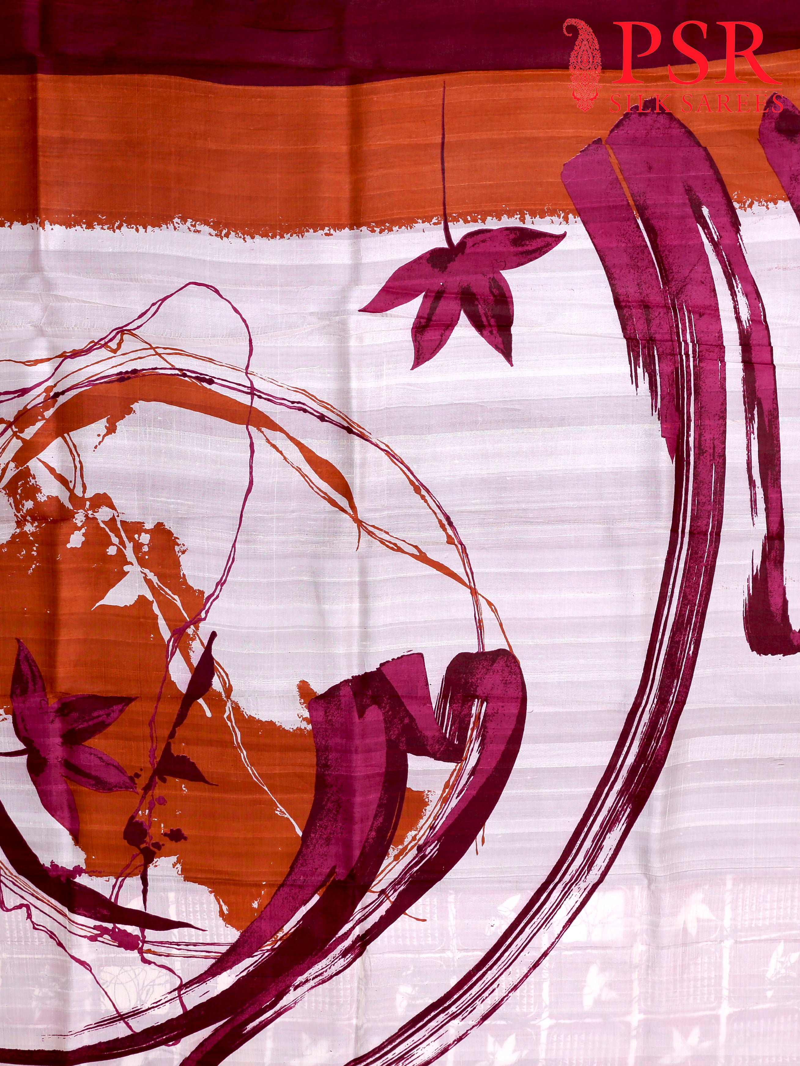 PSR Silk Sarees presents a Pearl White colored Murshidabad Silk Saree with combination of Dark Purple color.