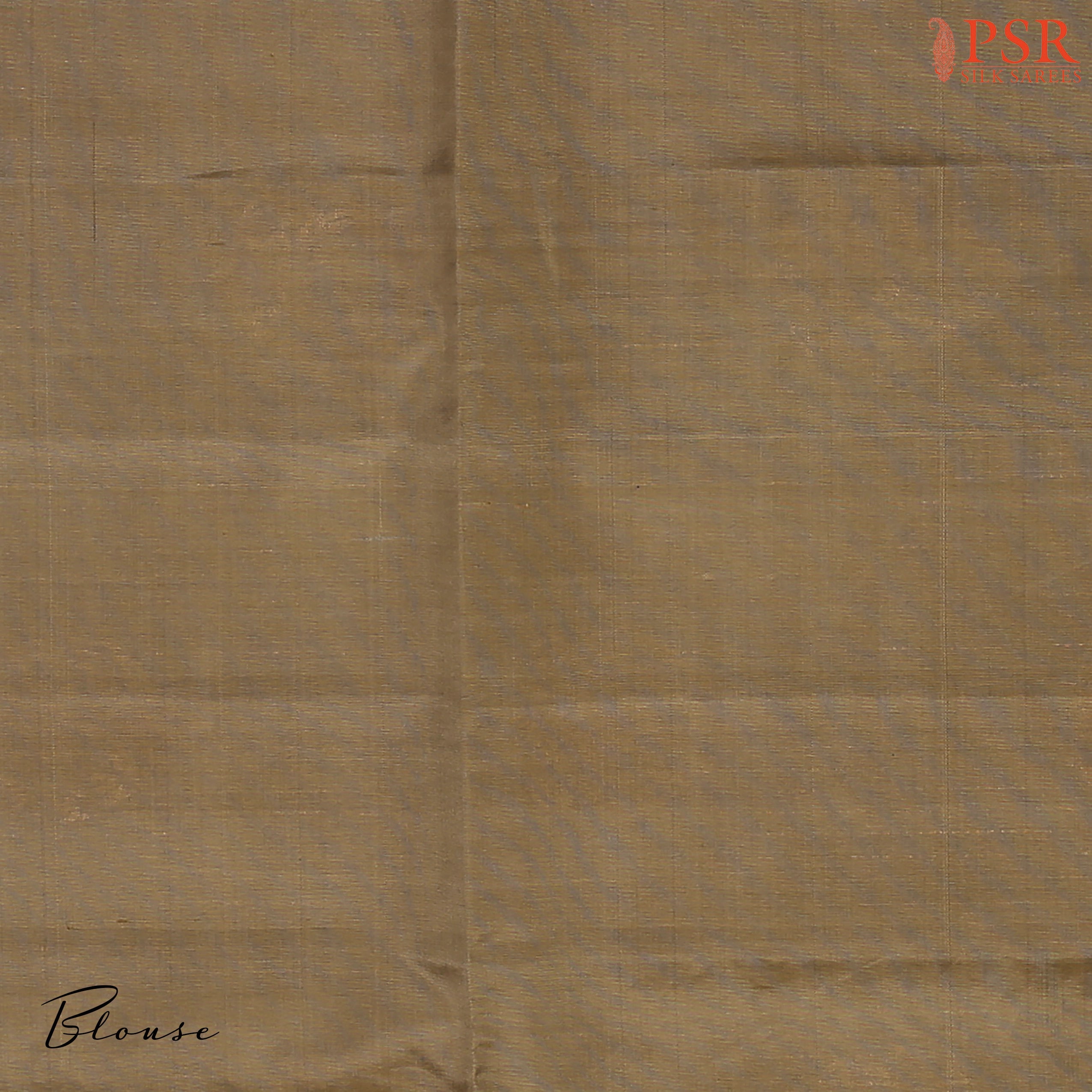 The saree is beautifully finished with a Chikoo-colored pallu woven in rich copper zari work, and a plain border for understated elegance. A plain Chikoo blouse completes the look — ideal for festive gatherings, formal events, and cultural celebrations.