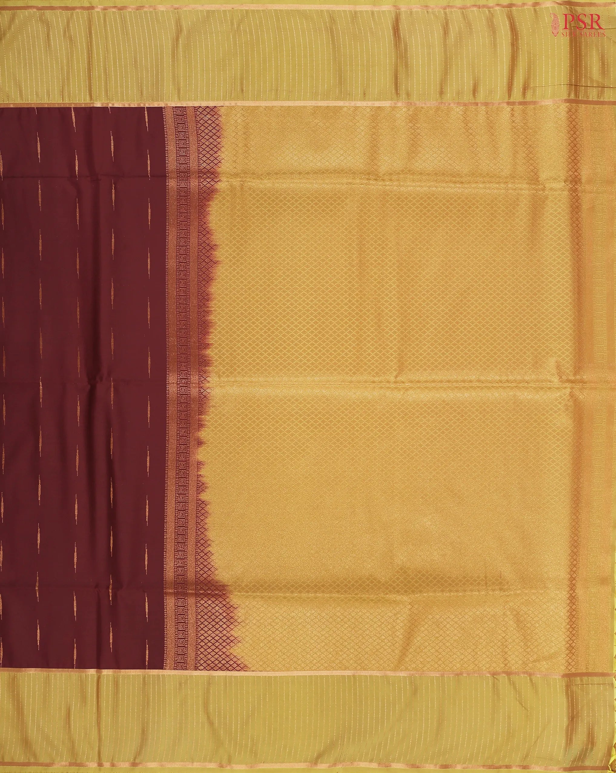 PSR Silk Sarees presents a Rosewood Brown Soft Art Silk Saree with combinaton of Dark Mustard color.