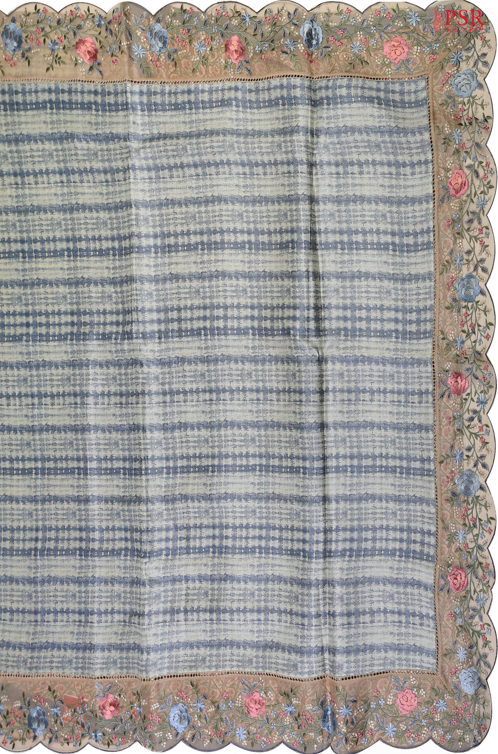 Steel Blue & Beige Kadhi Silk Embroidery Saree