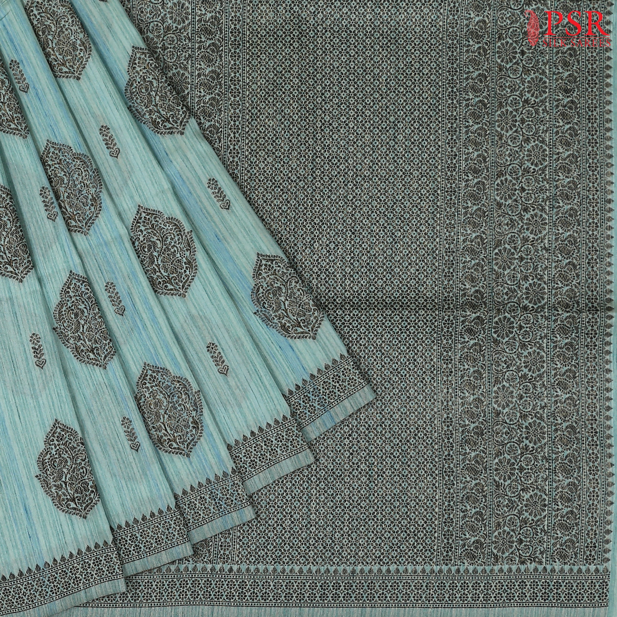 PSR Silk Sarees presents a Turquoise Blue colored Semi Banarasi saree.