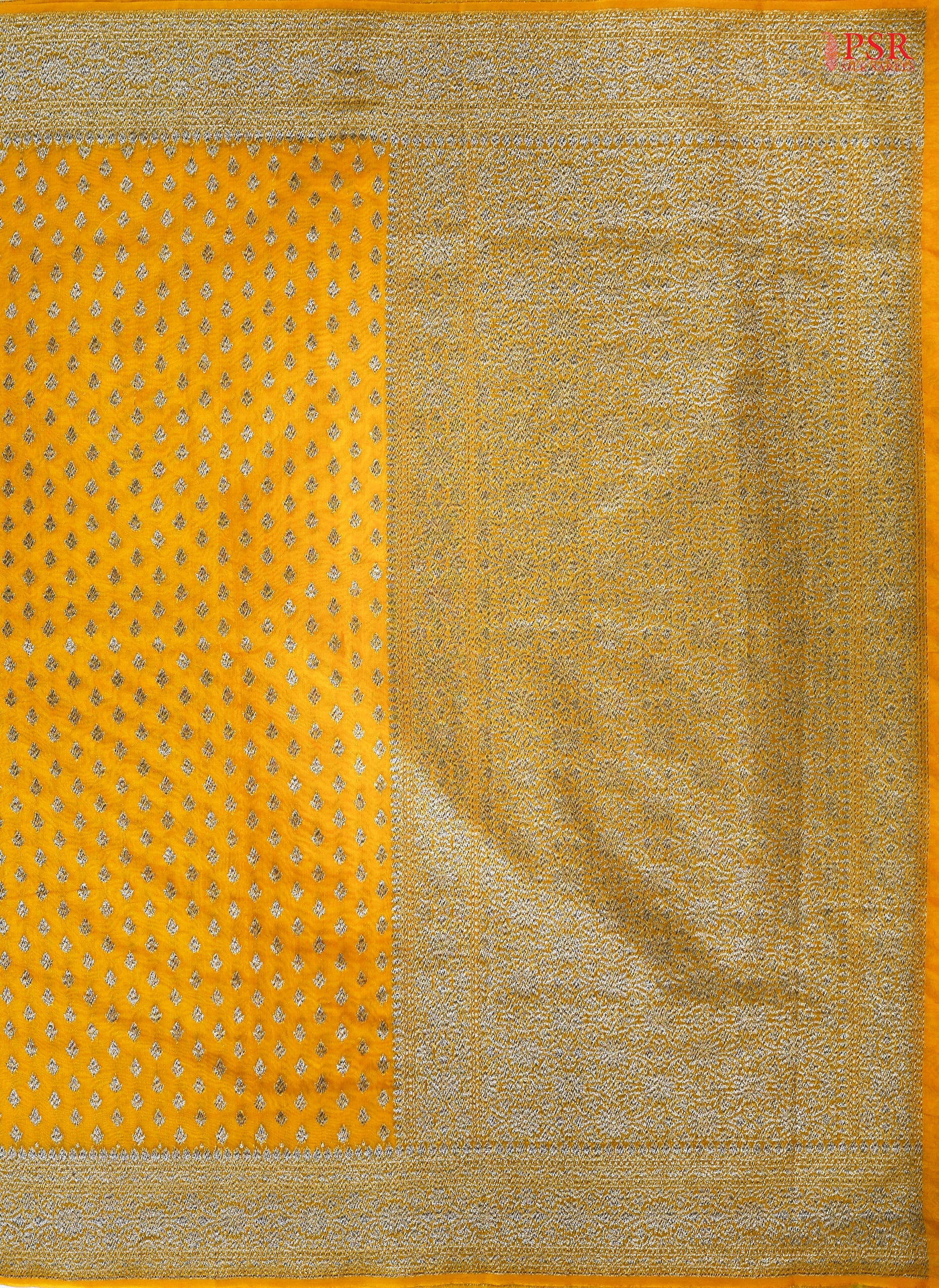 PSR Silks presents an Amber Yellow colored Georgette Saree.