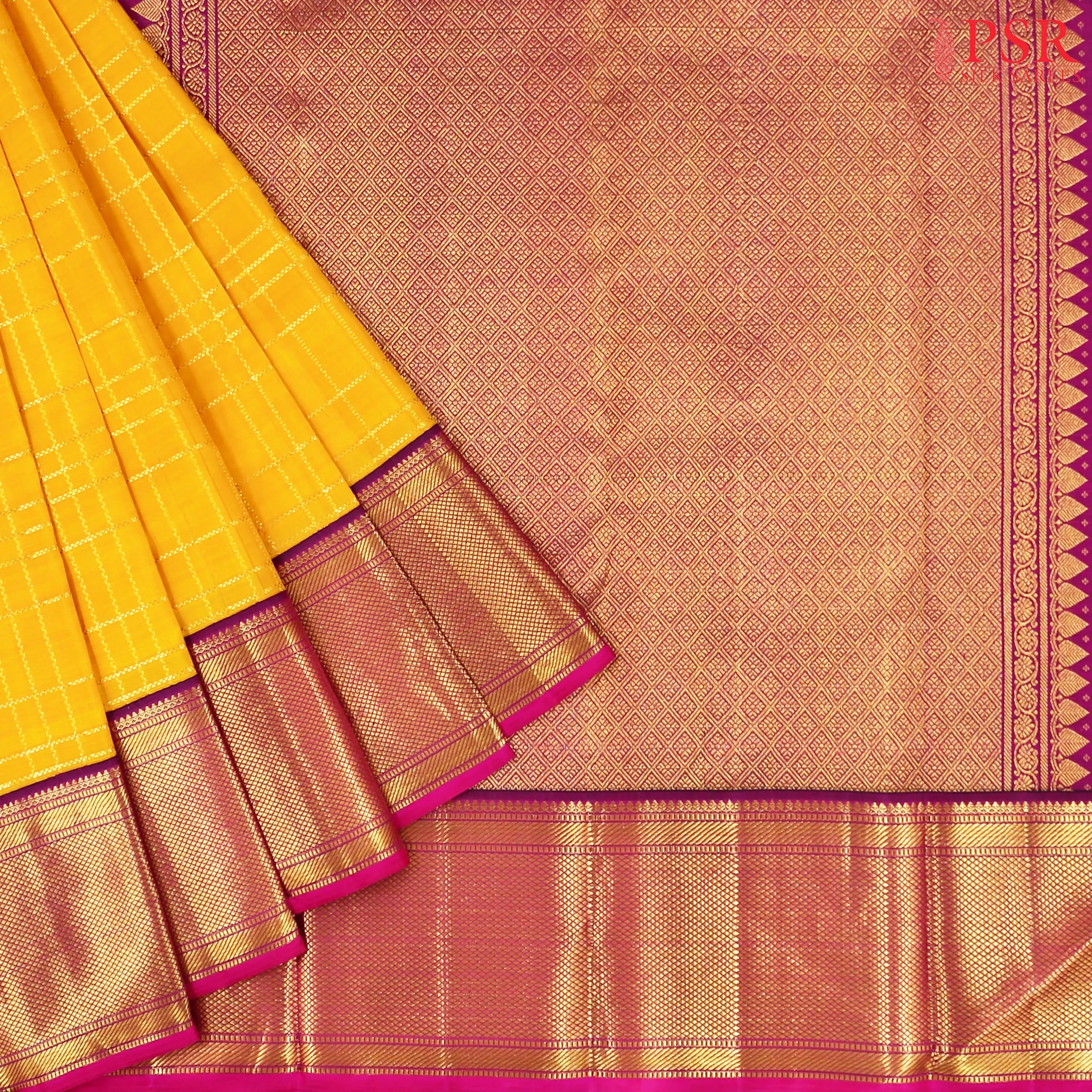 Radiate Festive Grace in Amber Yellow & Dark Purple ā PSR Shrestha Kanjivaram