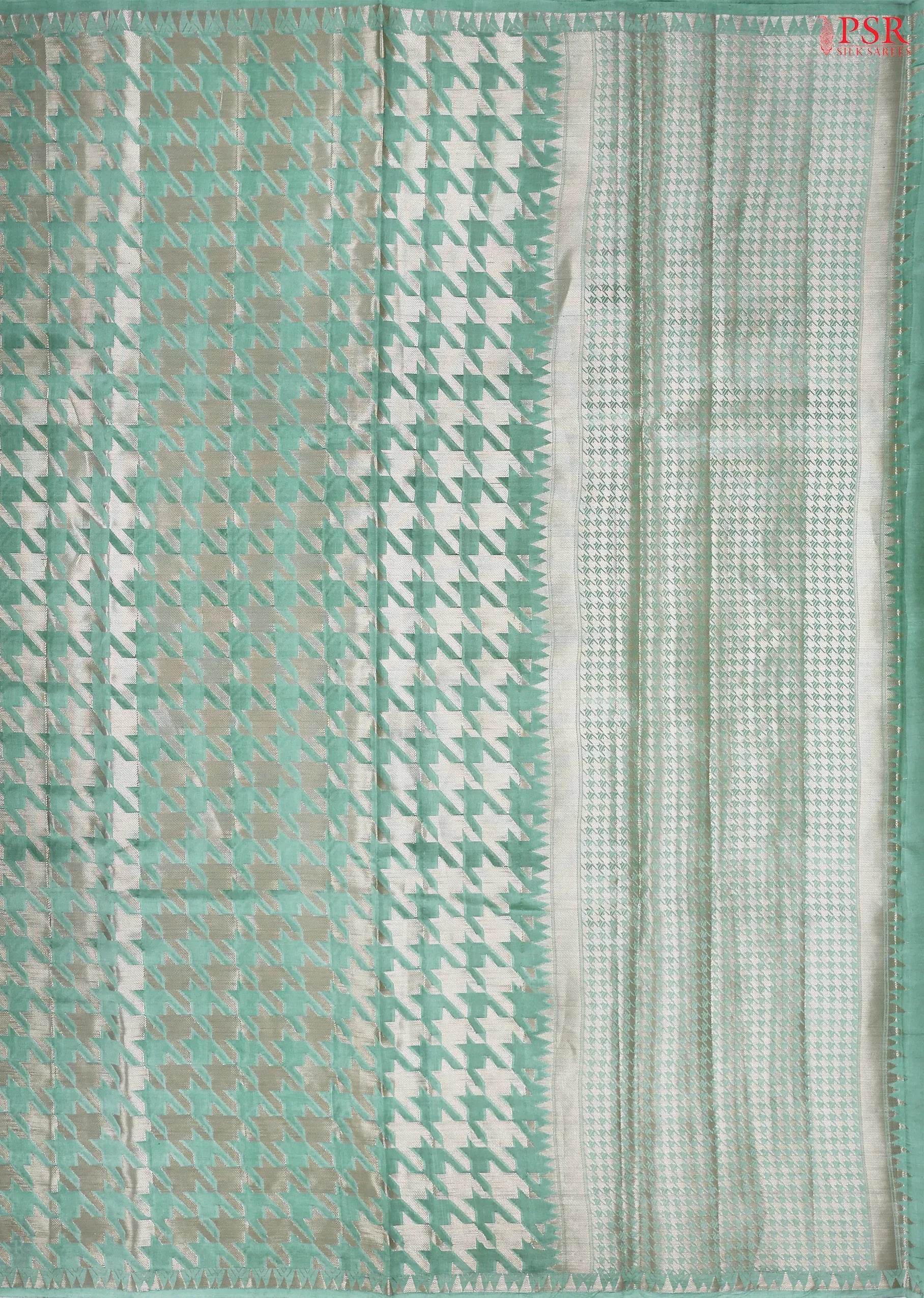 PSR Silk Sarees presents a radiant Aqua Pearl Banaras Silk Saree, crafted to reflect timeless elegance and festive grandeur.