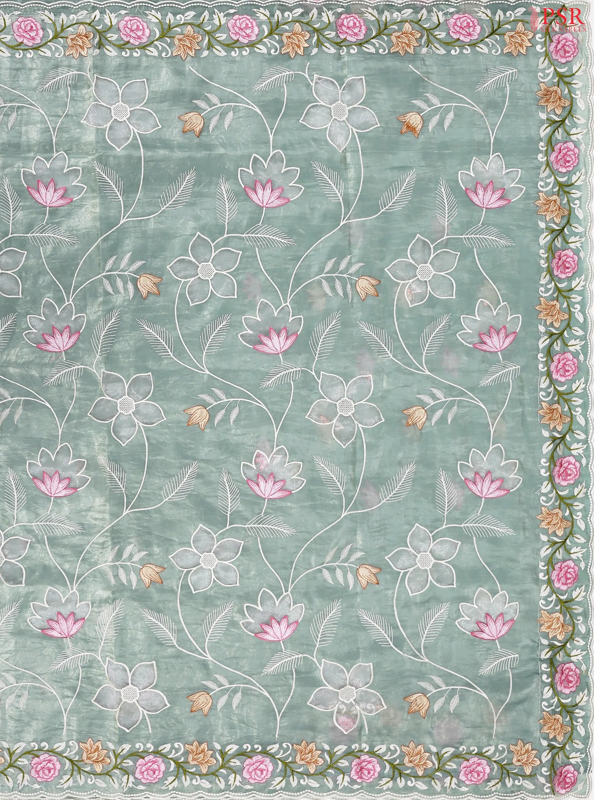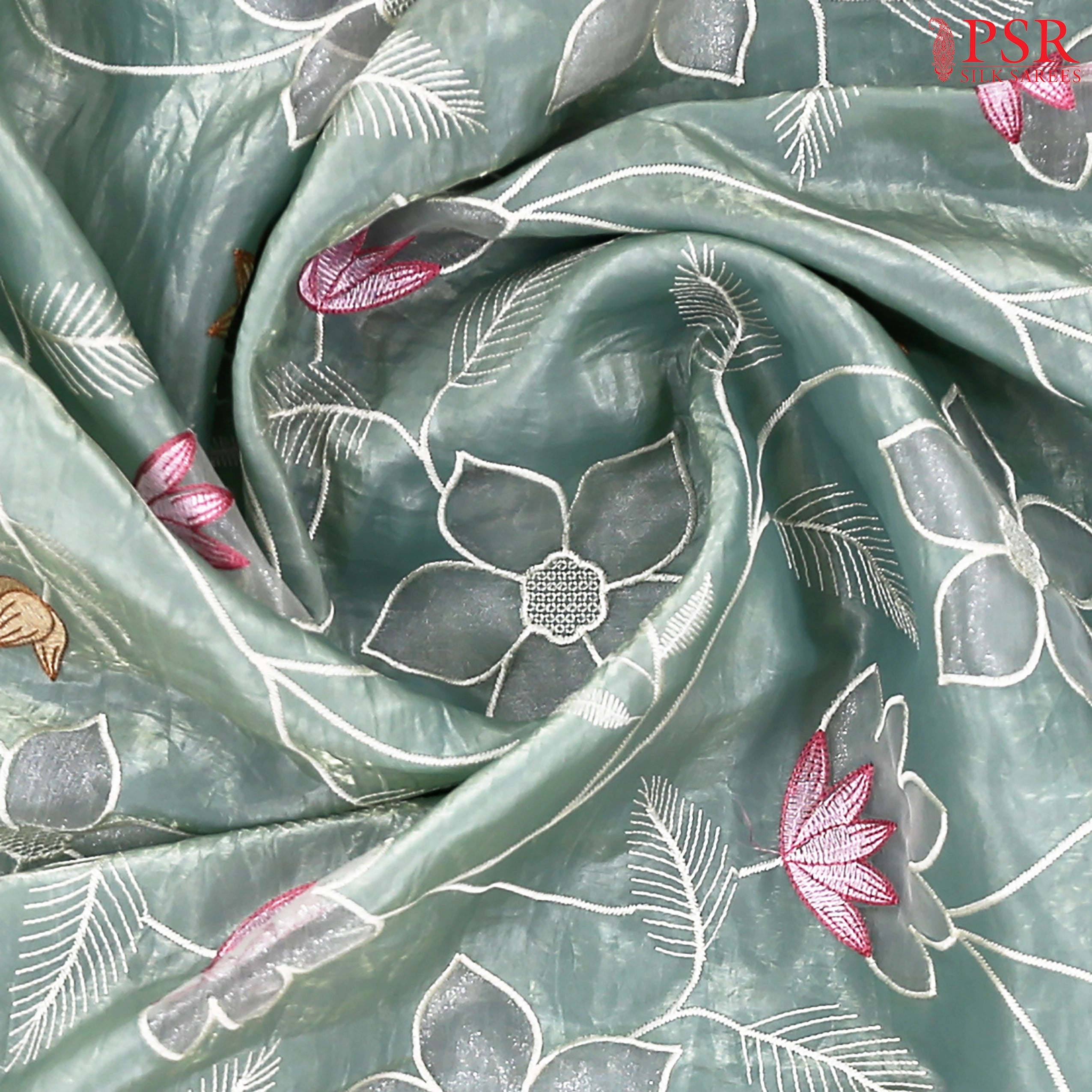 PSR Silk Sarees presents an Aqua Sea colored Organza embroidery saree.