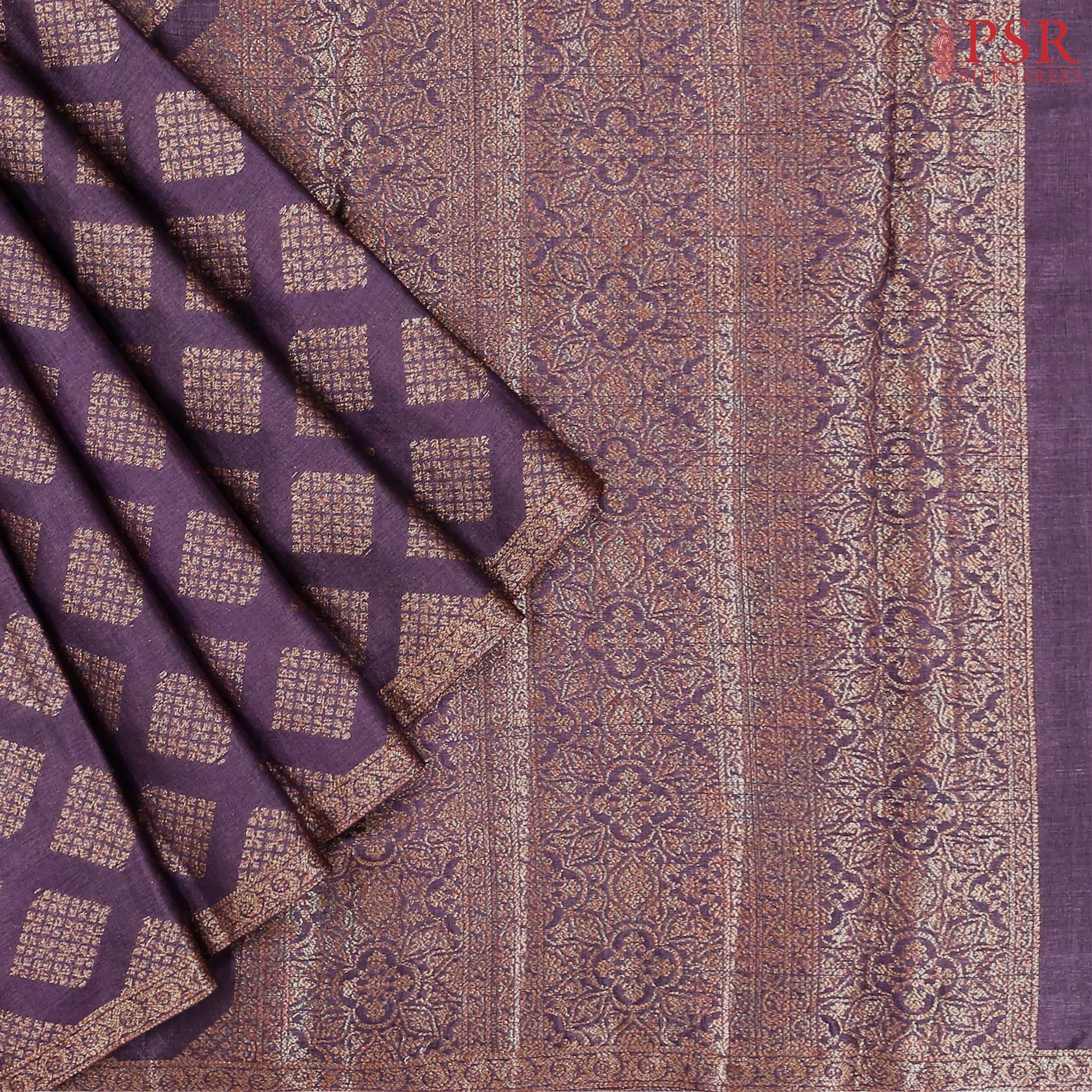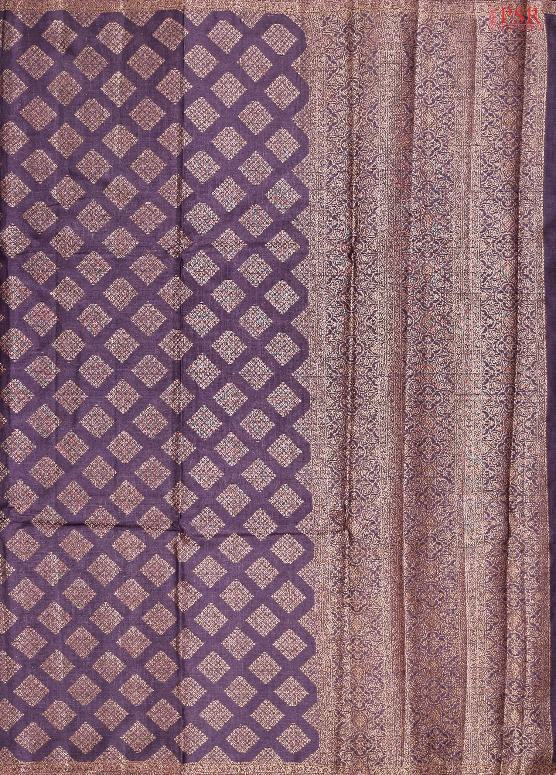 PSR Silk Sarees presents a Aubergine Purple delicate Banaras Tussar Silk saree.