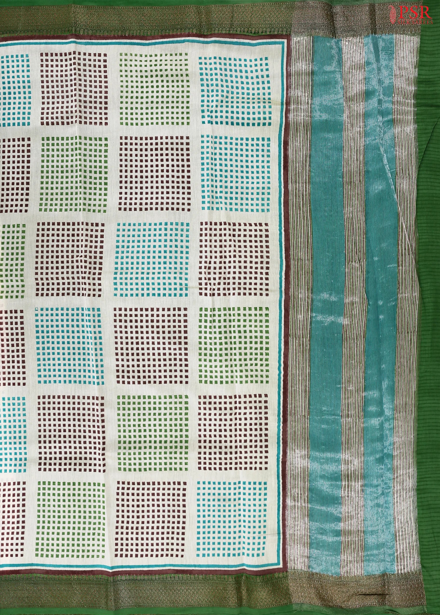 PSR Silk Sarees presents a Beige & Basil Green colored Chanderi Silk Cotton saree .