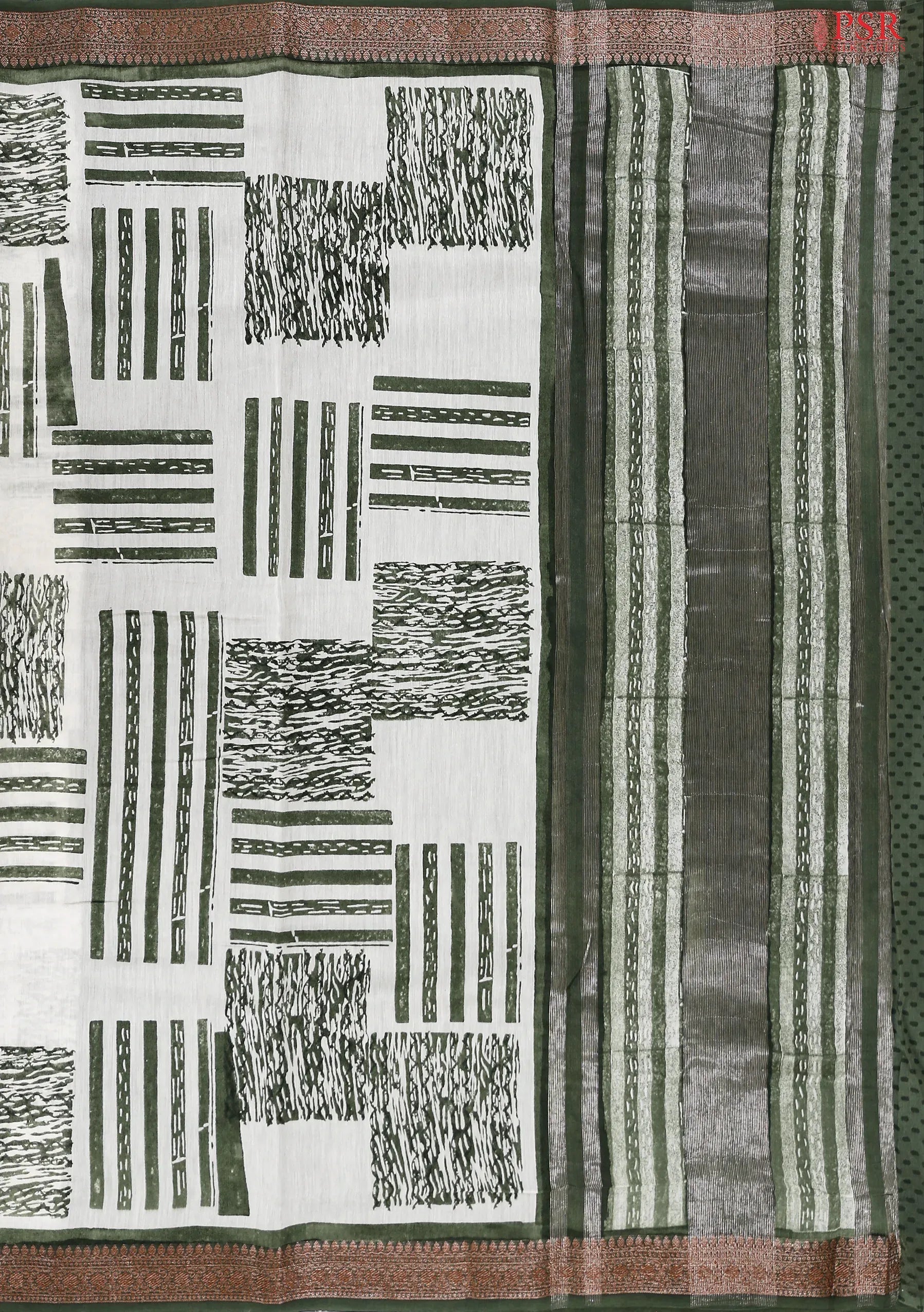 Beige & Dark Olive Green Chanderi Silk Cotton Saree