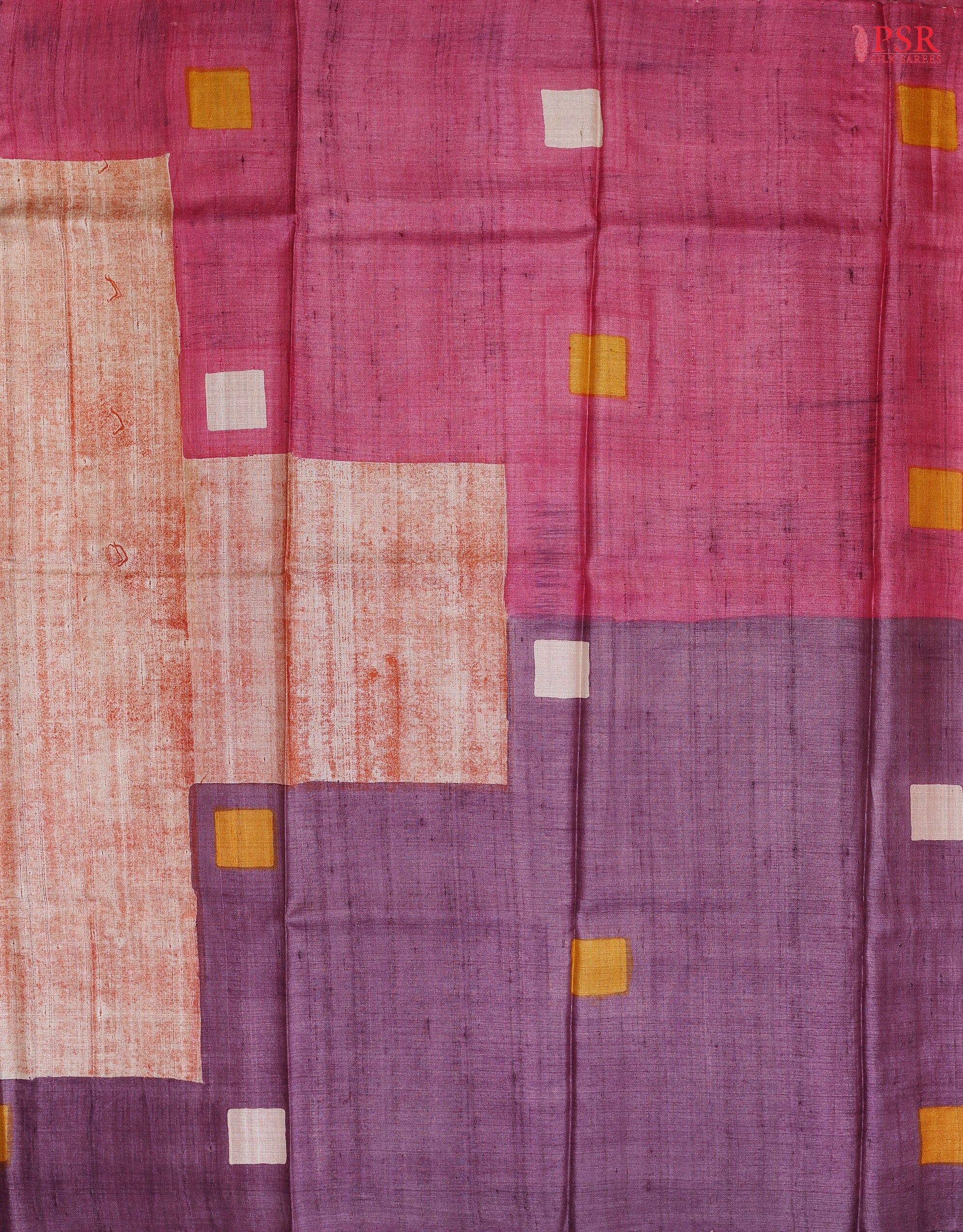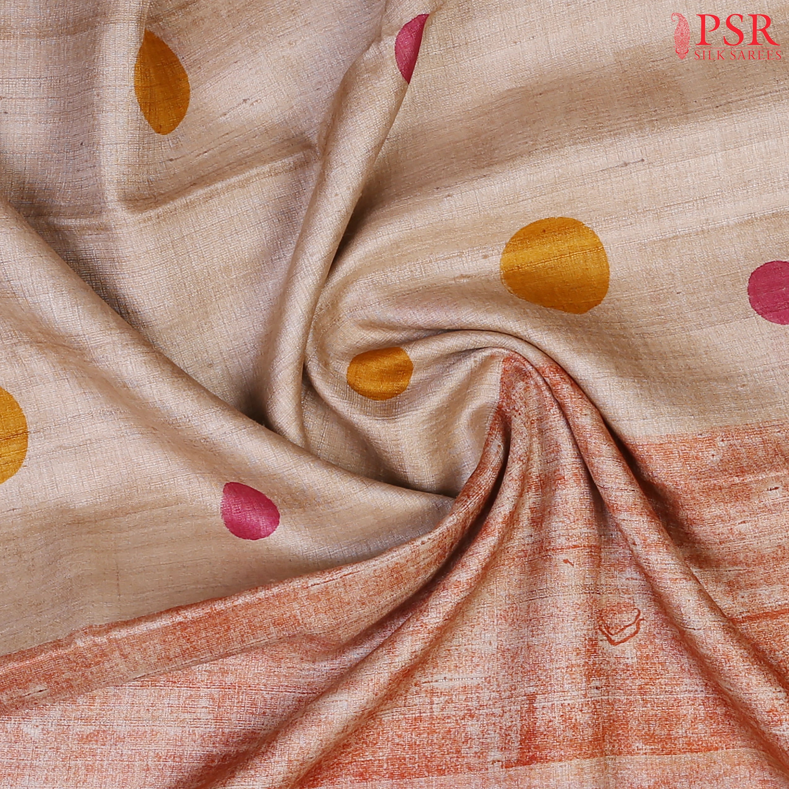 Celebrate joyful tradition with a modern twist in PSR Silk Sarees’ Beige Kadhi Tussar Silk Saree, artistically blended with vibrant Purple and Magenta tones. This graceful saree features colorful polka motifs, bringing a playful charm to its classic base.