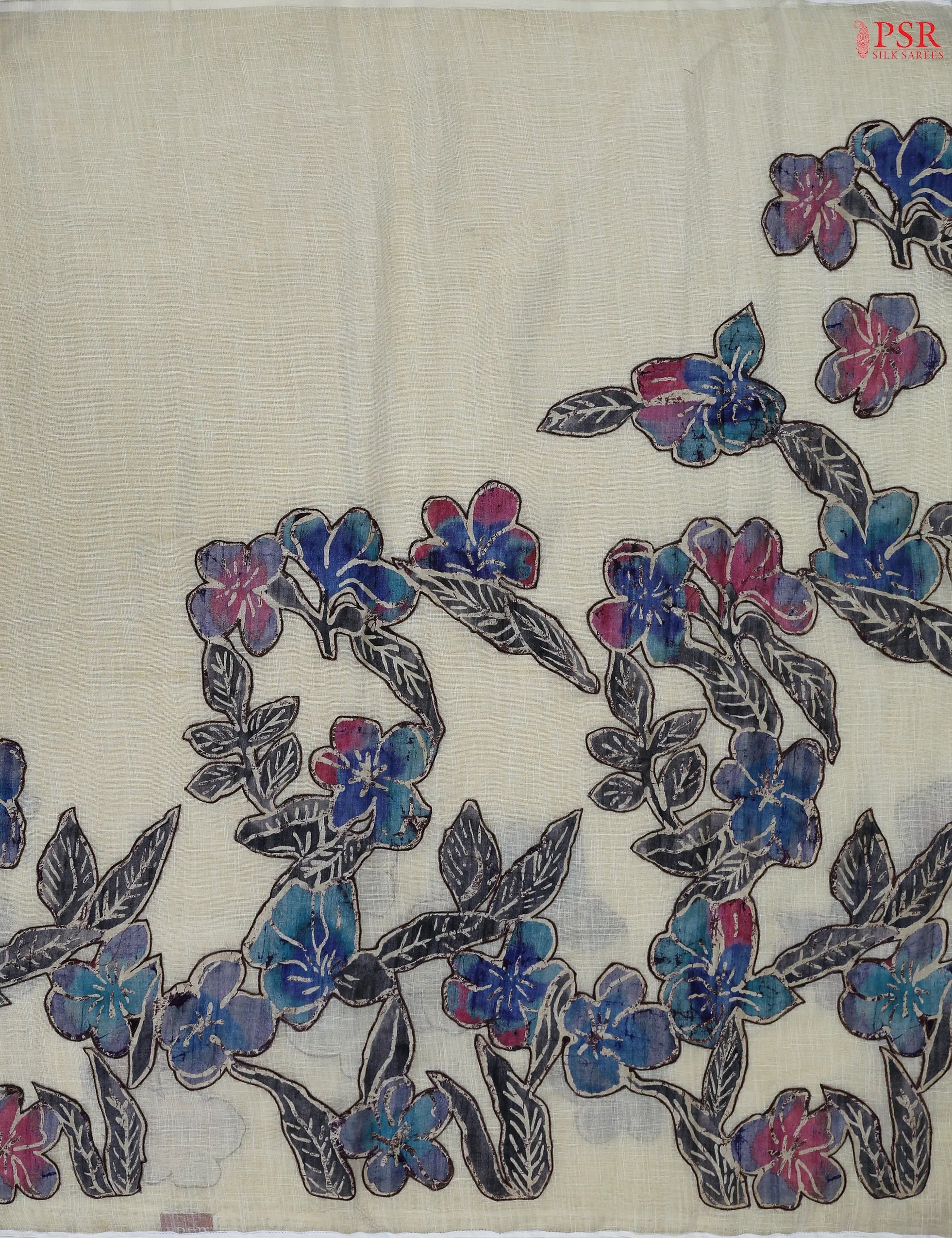 PSR Silk Sarees presents a Beige colored Tissue Linen embroidery saree.