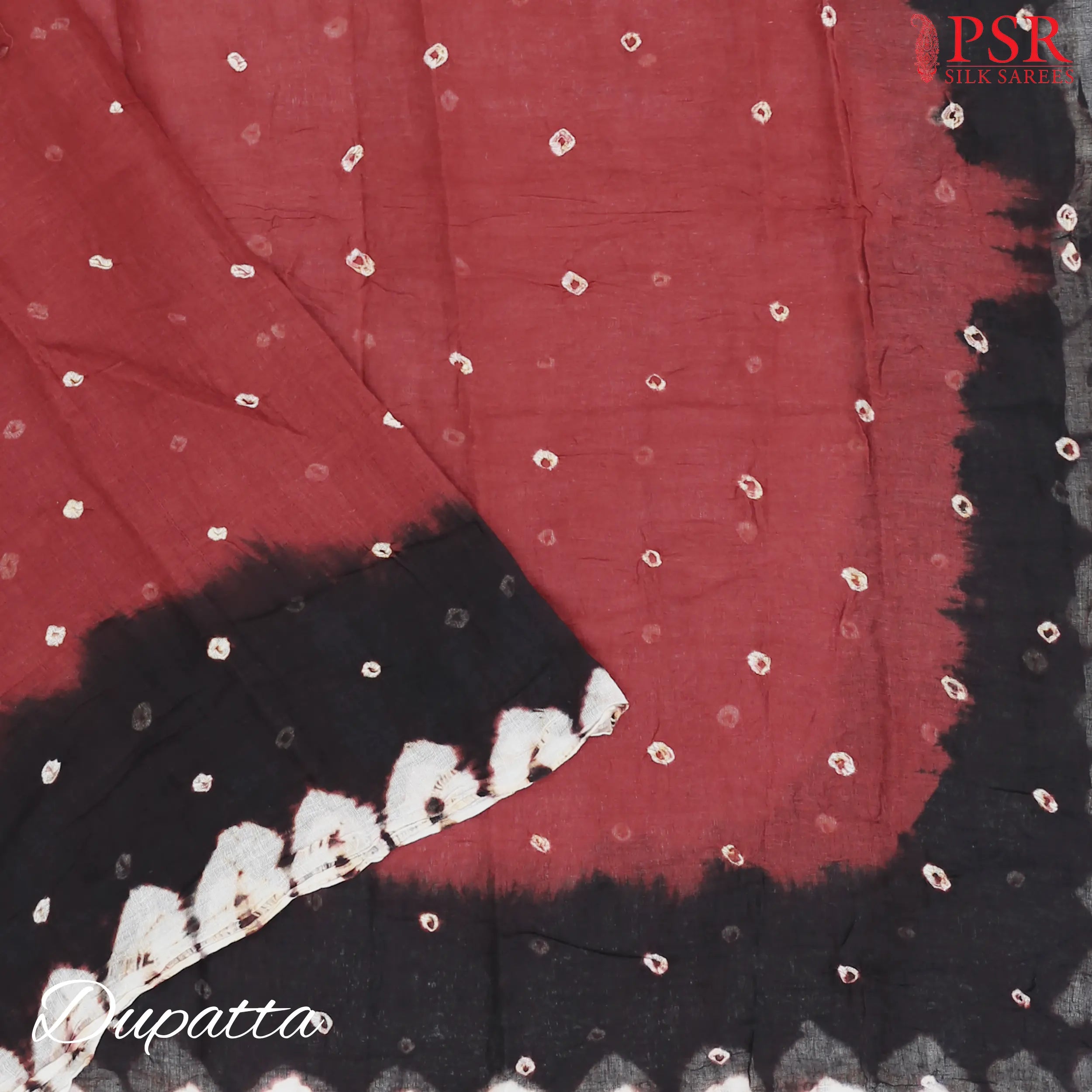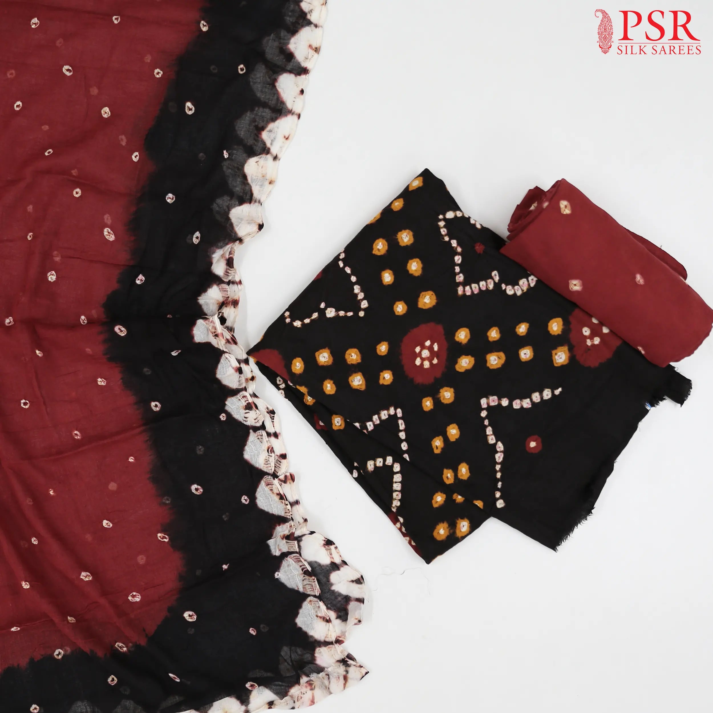 PSR Silk Sarees presents a Black Cotton Bandhini Dress Material
