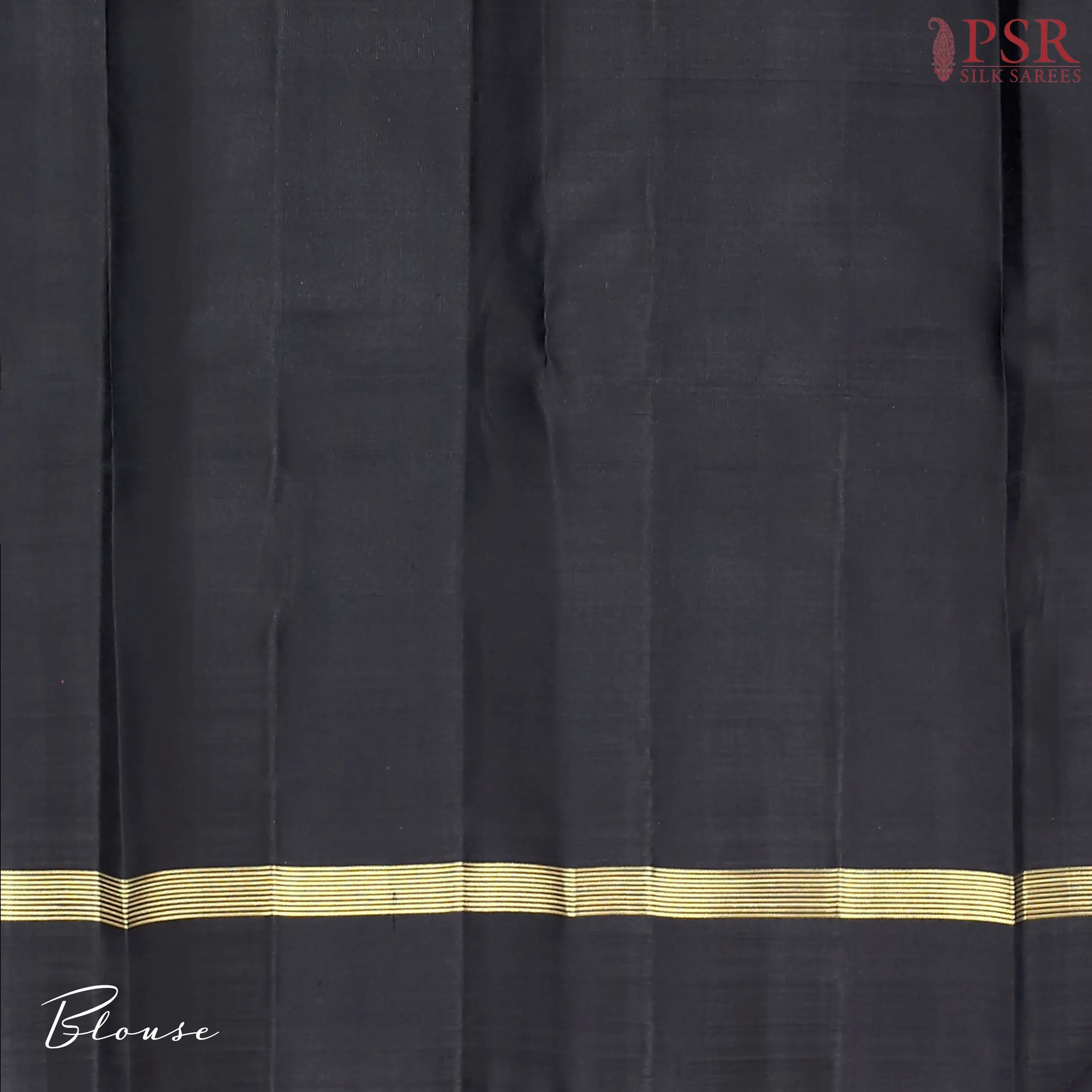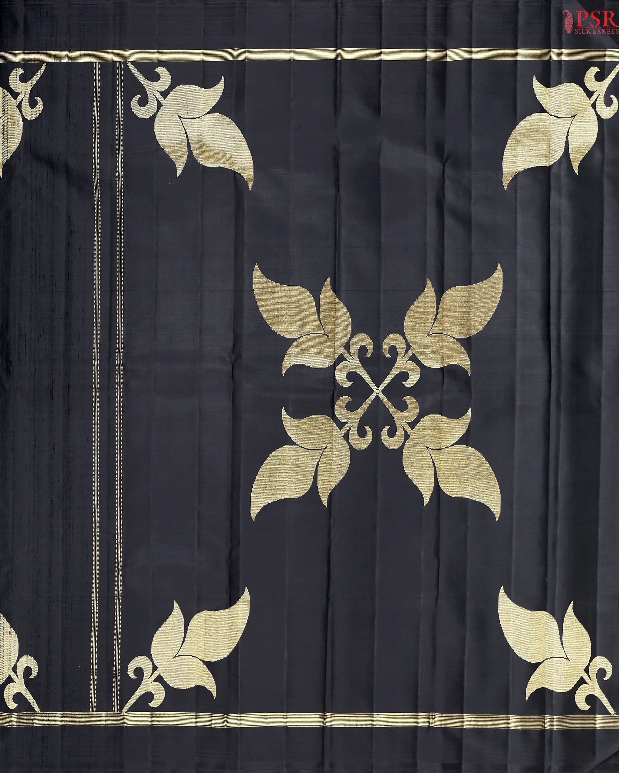 PSR Silk Sarees presents a majestic Black Jute Kanchipuram Silk Saree, categorized under the elite ā€œShrestha Kanjivaramā€ collection.