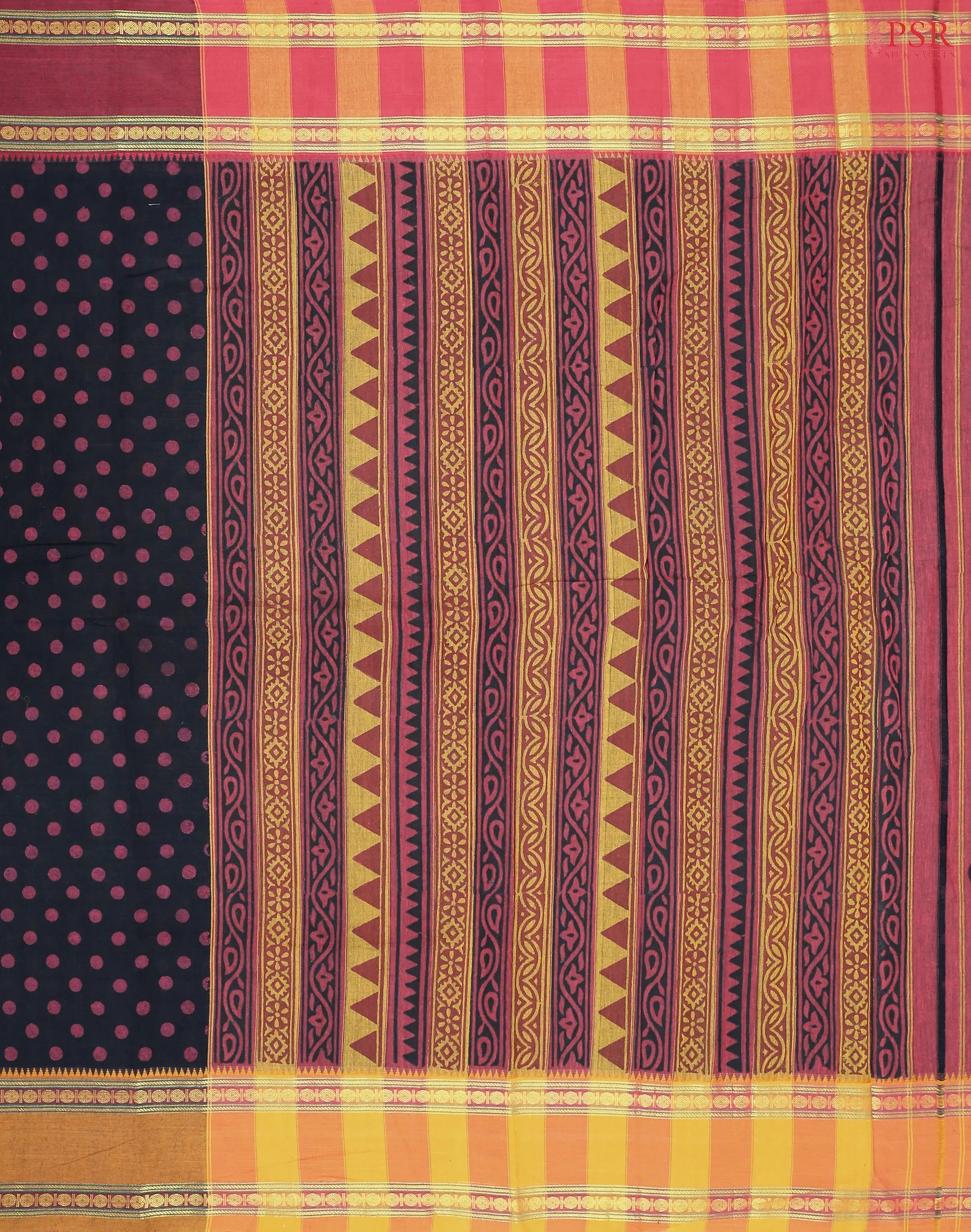PSR Silk Sarees presents a Black colored Silk Cotton saree with Ganga Jamuna Border