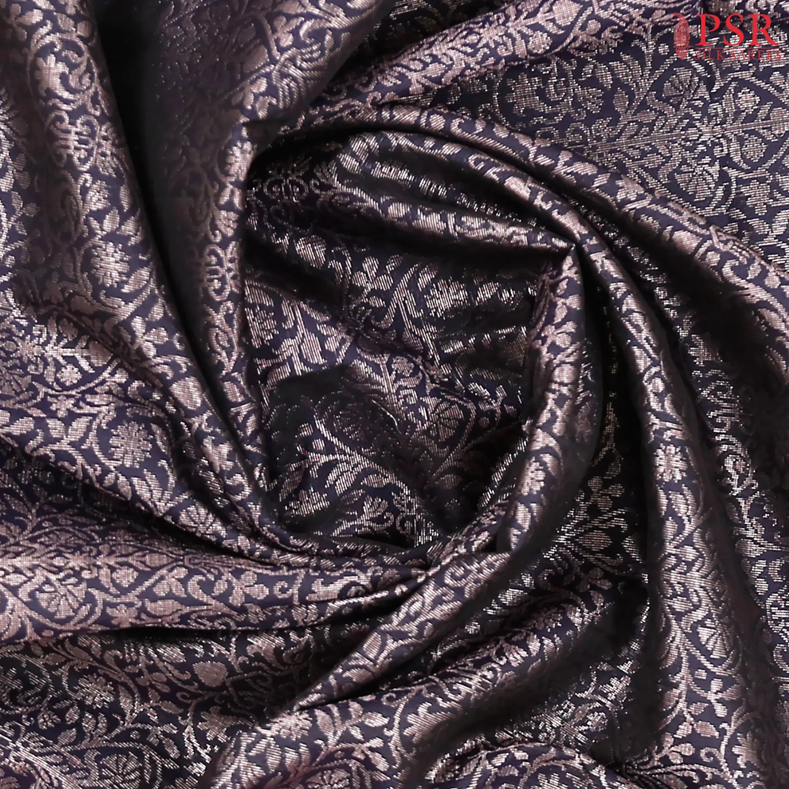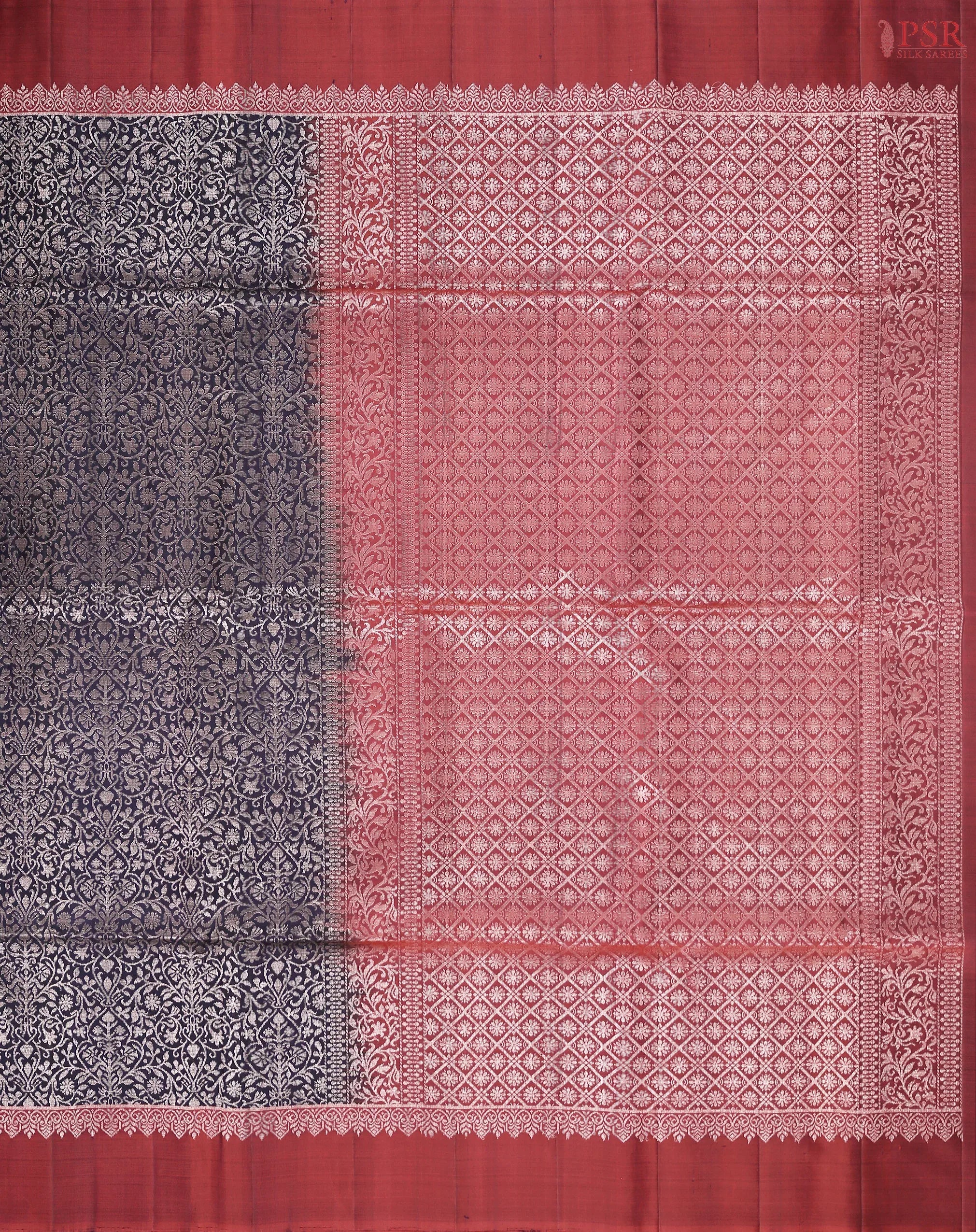 PSR Silk Sarees presents a graceful Blackish Blue Soft Silk Saree paired with a sophisticated Maroon combination, radiating warmth and traditional beauty.