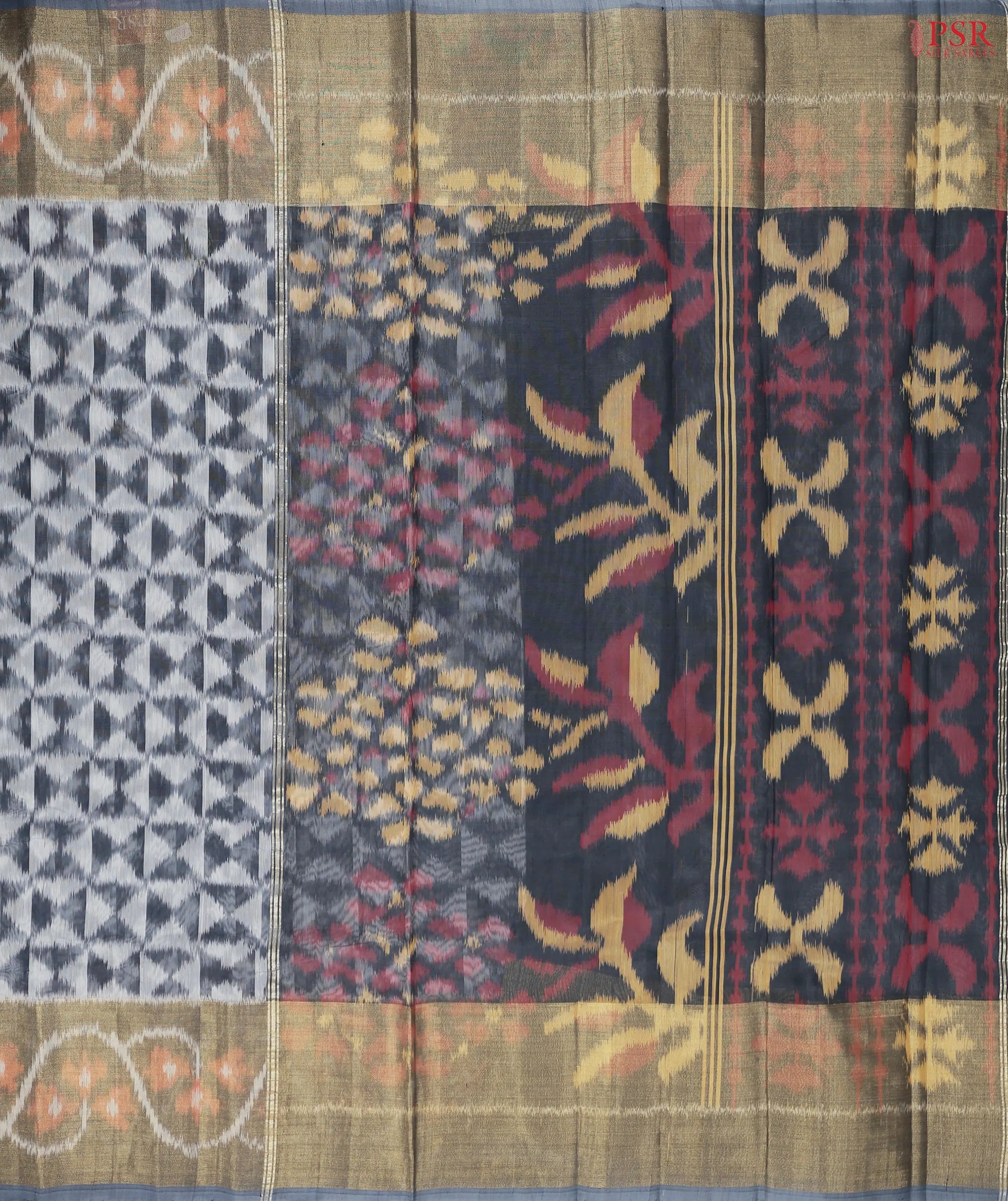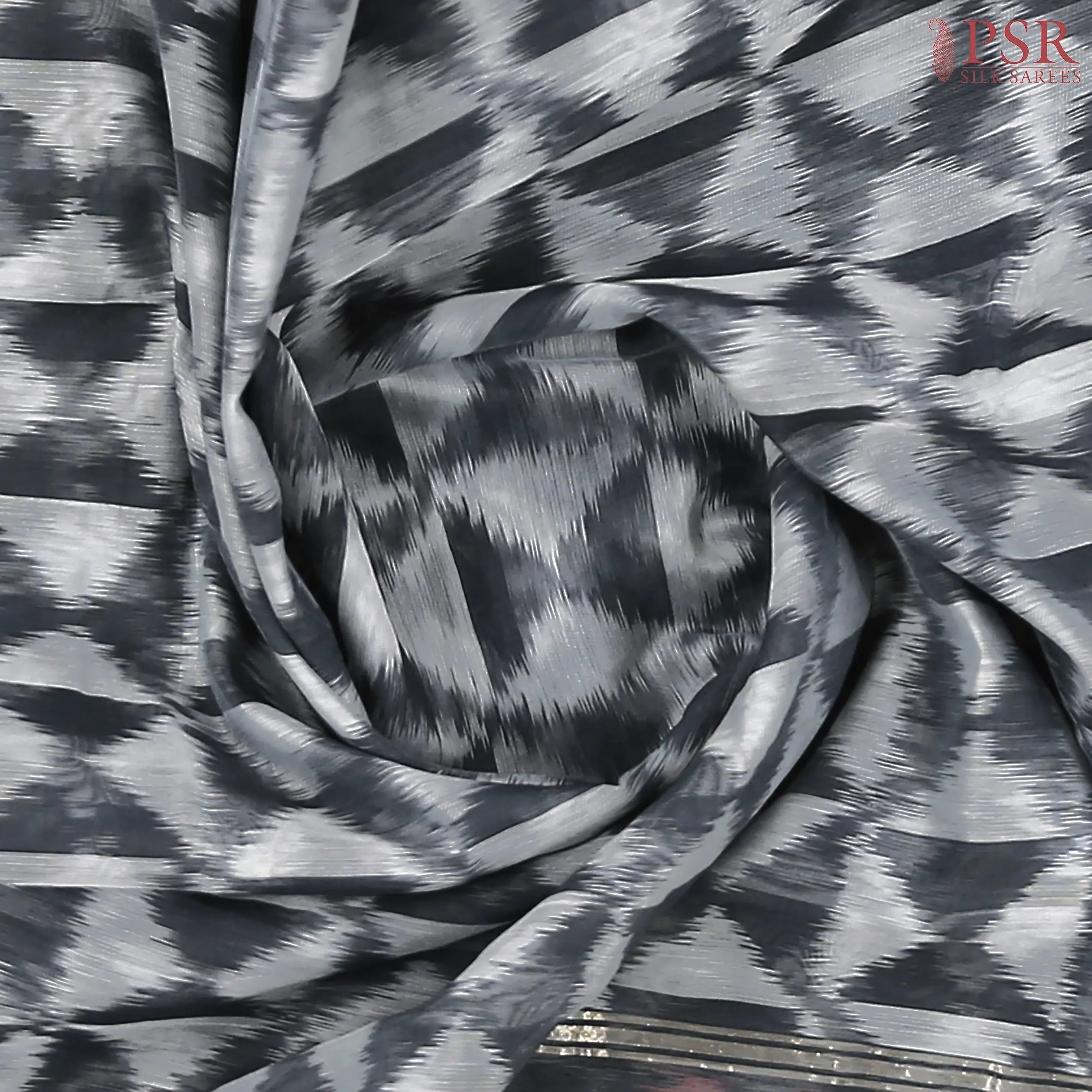 PSR Silk Sarees presents a Cement Grey colored Semi Patola Silk Cotton saree.