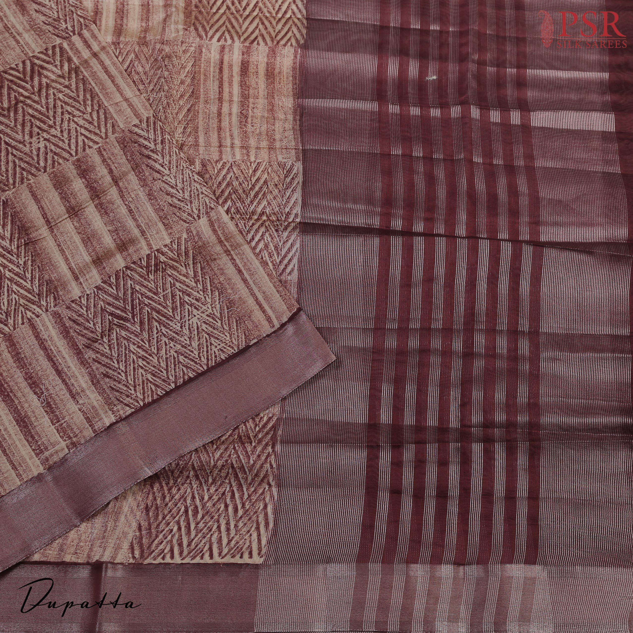 PSR Silks presents Burgundy & Beige colored Chanderi Patta Cotton dress material