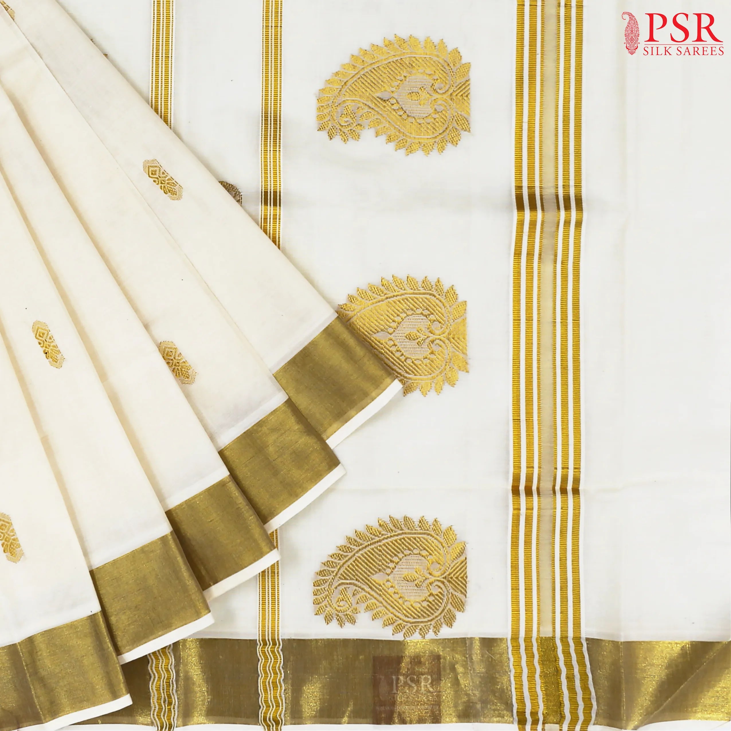 PSR Silk Sarees presents a Cream White colored Kerala Cotton saree