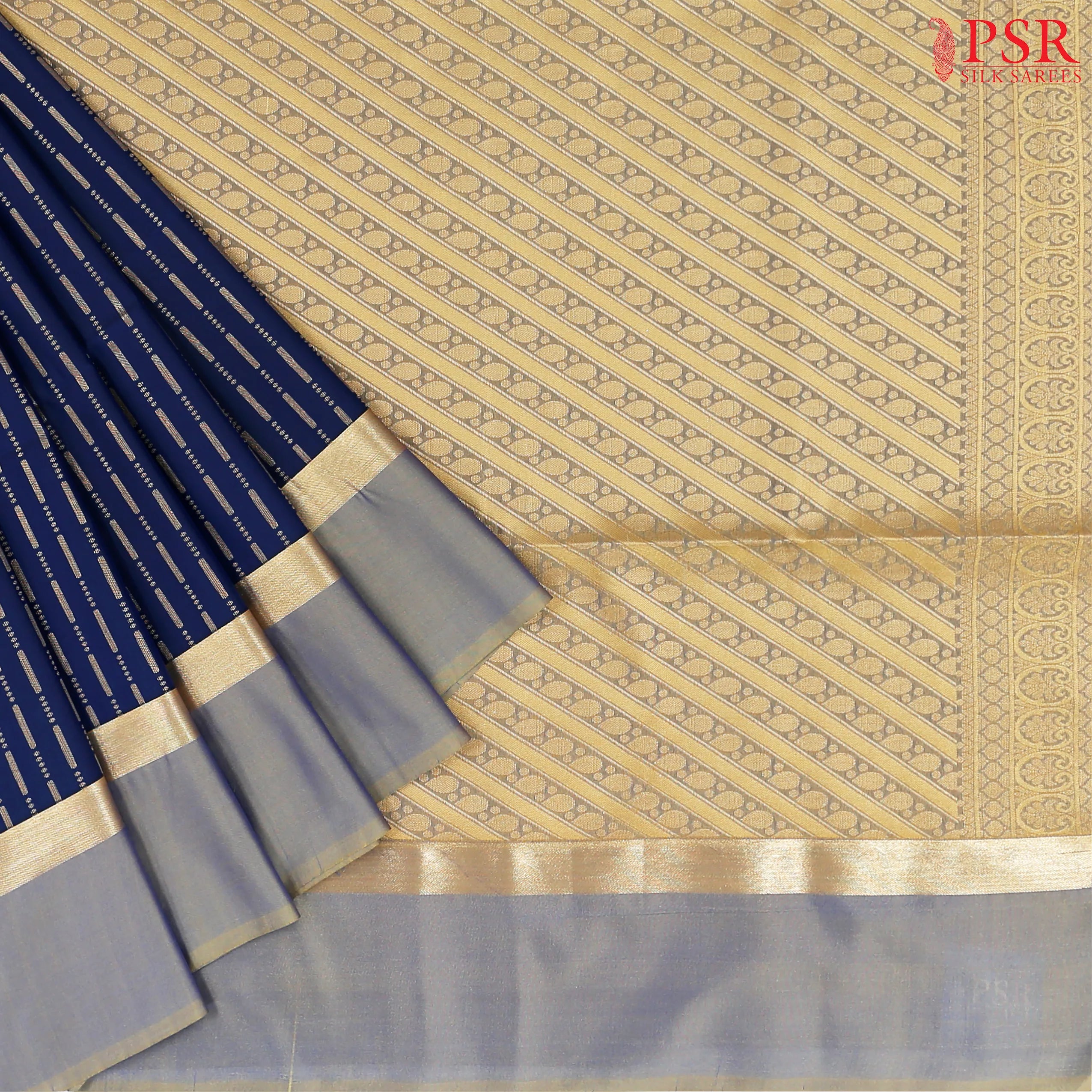 PSR Silk Sarees presents a Dark Blue Soft Art Silk saree with combination of Dark Grey color.