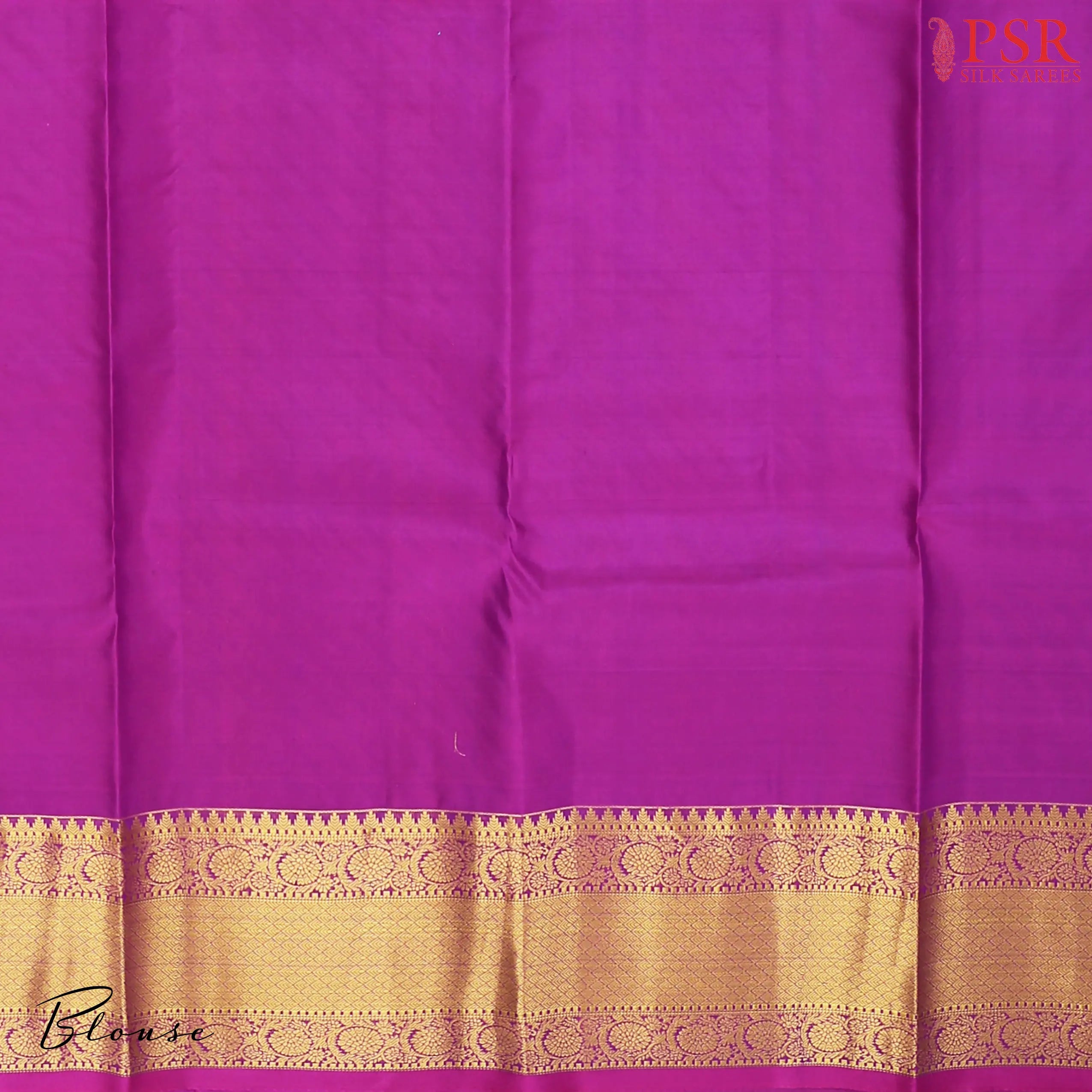 PSR Silk Sarees presents a Dark Blurple colored Fancy Kanchipuram Silk with contrasting combination of Magenta color.