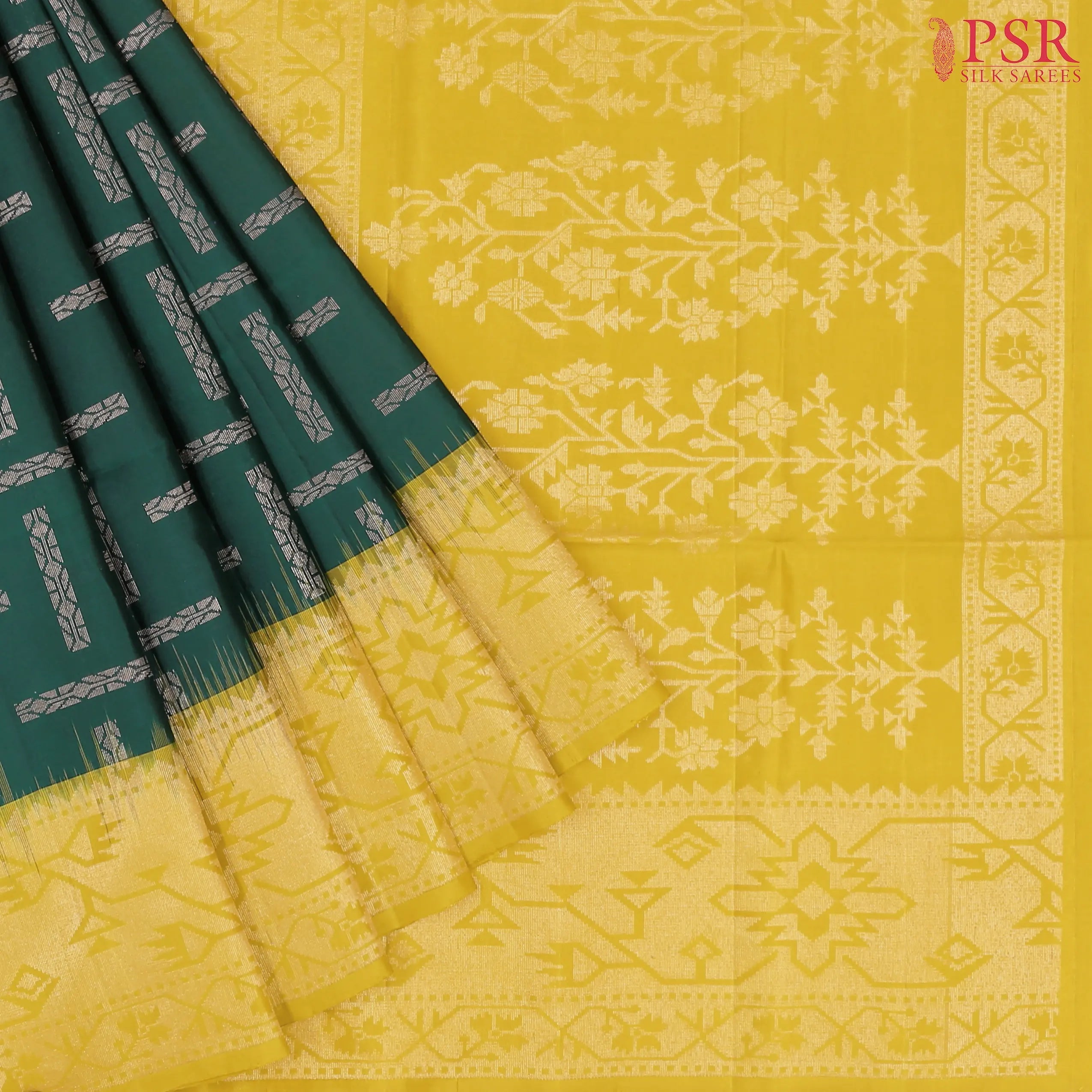 Elevate Your Style with PSR Silks' Dark Green & Olive Yellow Soft Silk Saree!