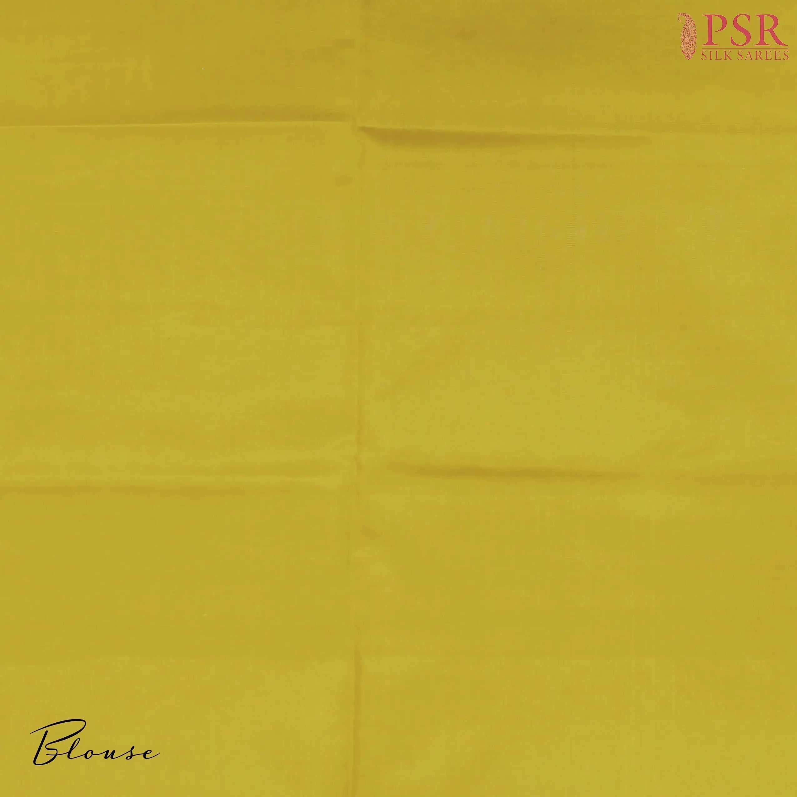 Make a striking statement with this luxurious Red Soft Silk Saree from PSR Silks, beautifully paired with a vibrant Olive Yellow pallu. This elegant saree features an intricate copper zari designer jacquard pattern, offering a contemporary twist to traditional design. The contrasting pallu & border, adorned with rich copper zari work, adds an extra layer of sophistication. Complete the look with the sleek plain Olive Yellow  blouse, perfect for special occasions and festivities.