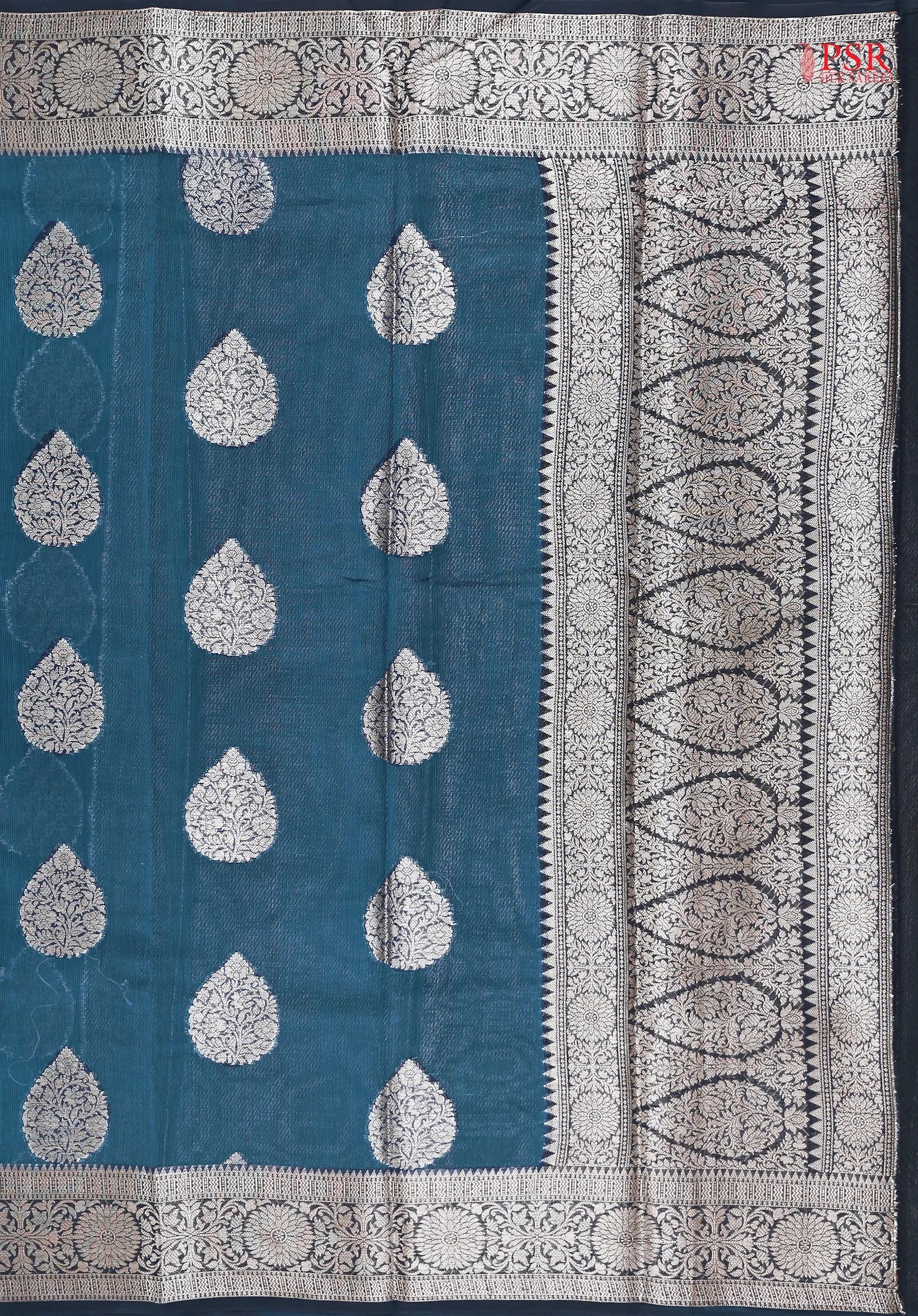 Dark Peacock Blue Chanderi Silk Cotton Saree