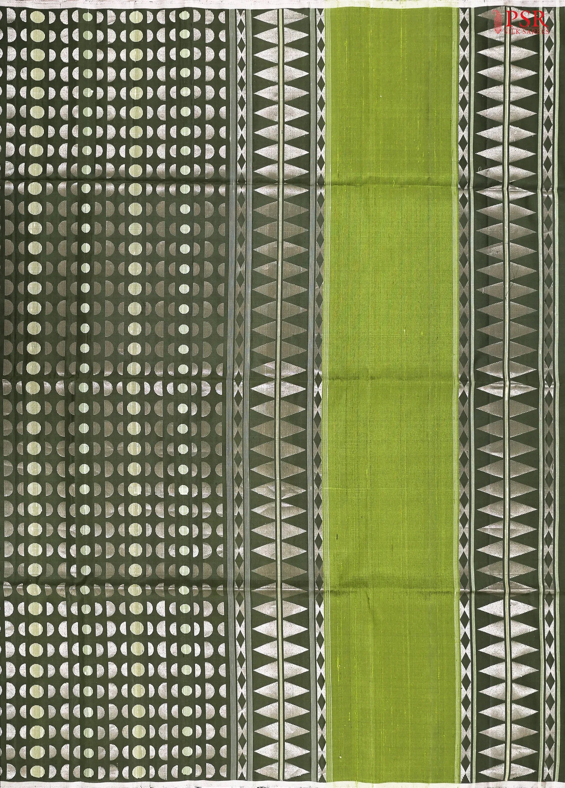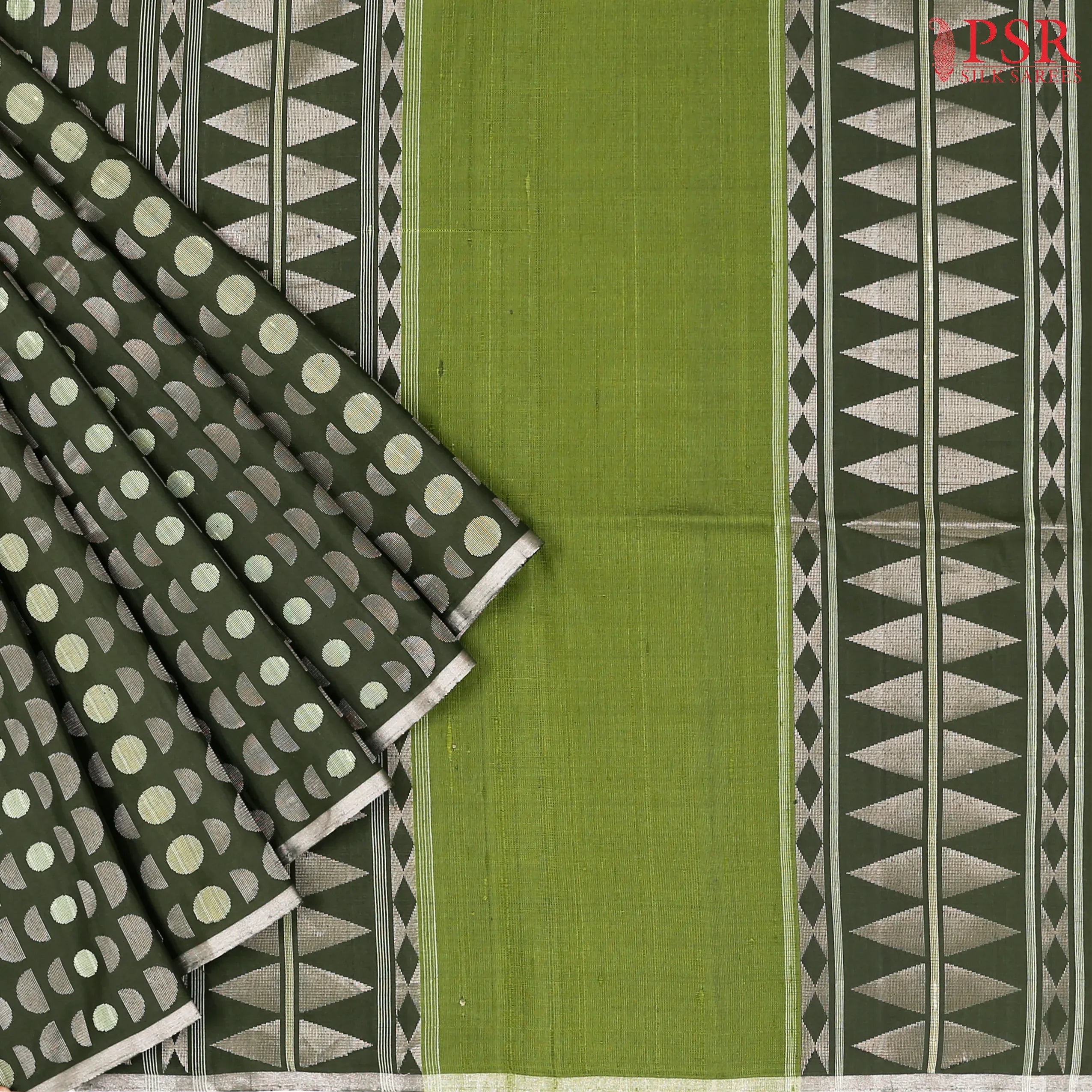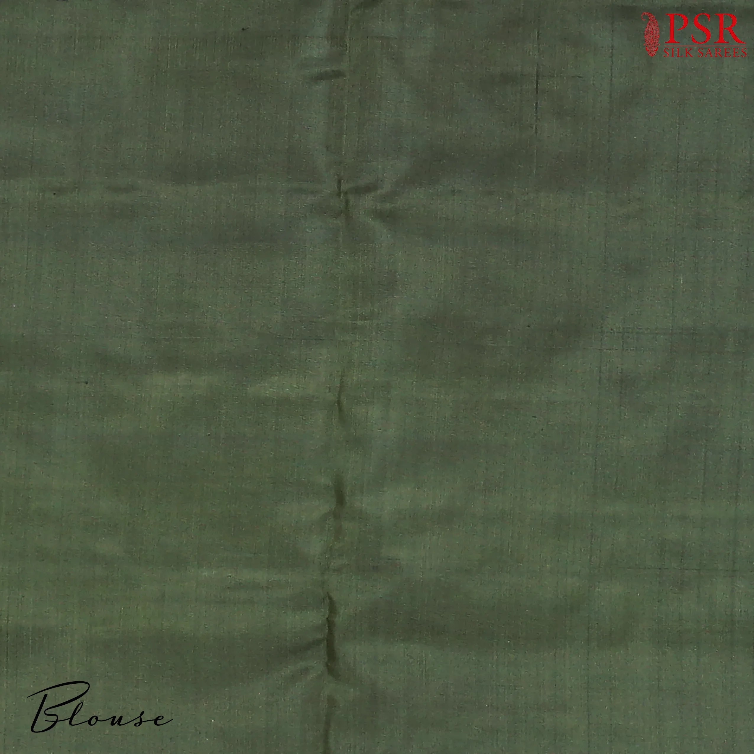 PSR Silk Sarees presents a graceful Dark Pickle Green Soft Silk Saree, designed to reflect subtle elegance with artistic detailing.