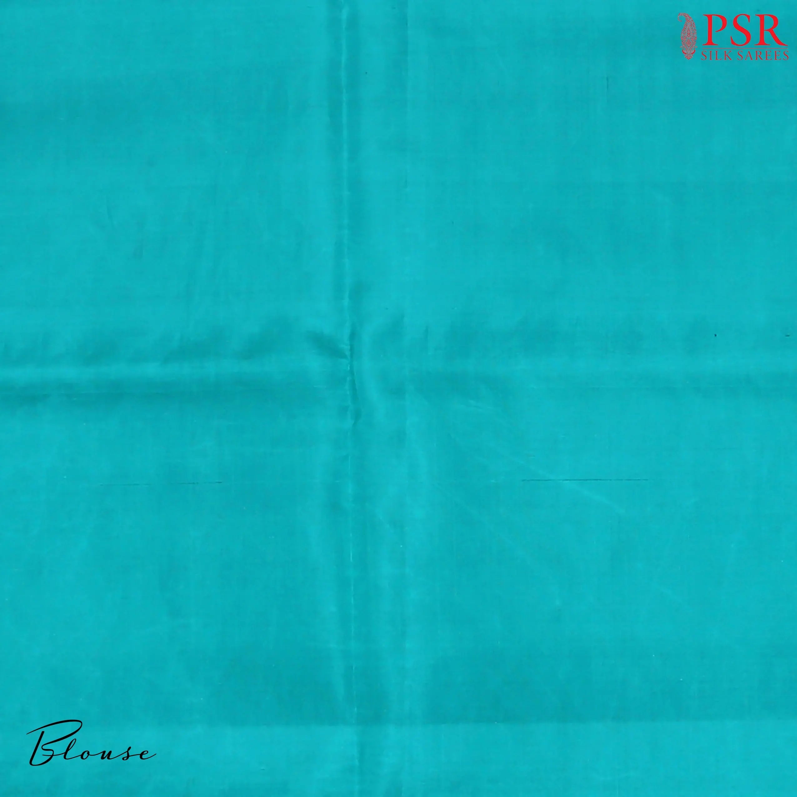 The saree features an impressive zari designer floral jacquard weave, giving it a refined and elegant texture. It is beautifully complemented by a Turquoise Blue pallu and border adorned with matching zari jacquard work. Completing the ensemble is a plain Turquoise Blue blouse, adding a touch of subtle sophistication.