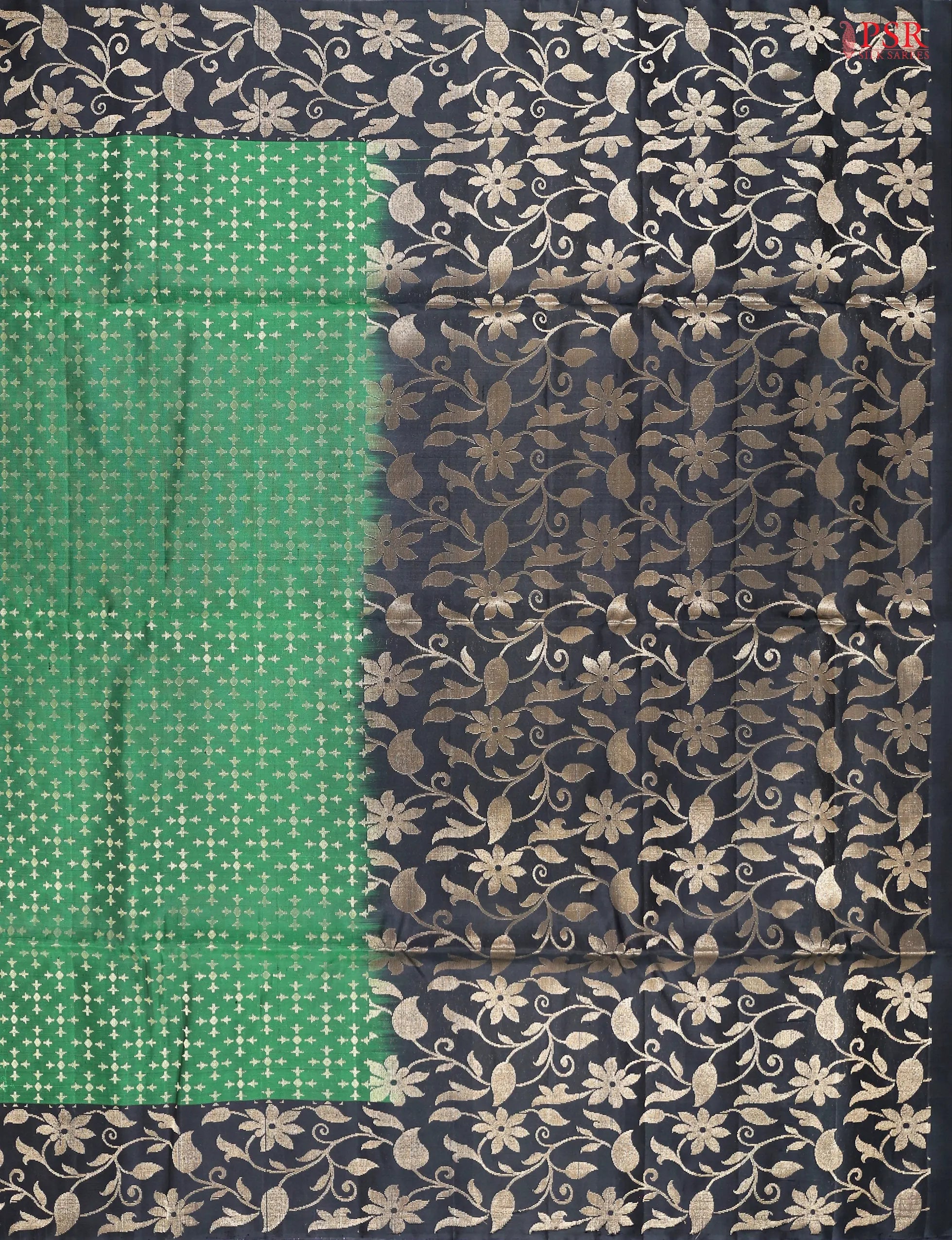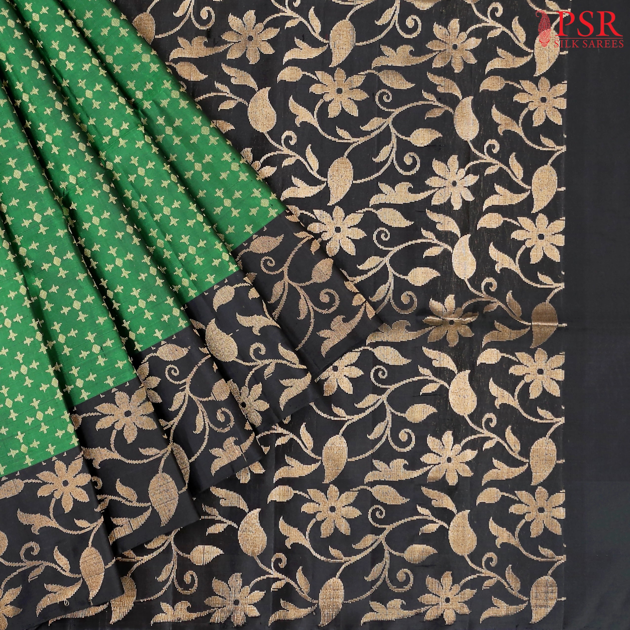 A Emerald Green & Black Soft Silk Saree that blends heritage craftsmanship with contemporary elegance.