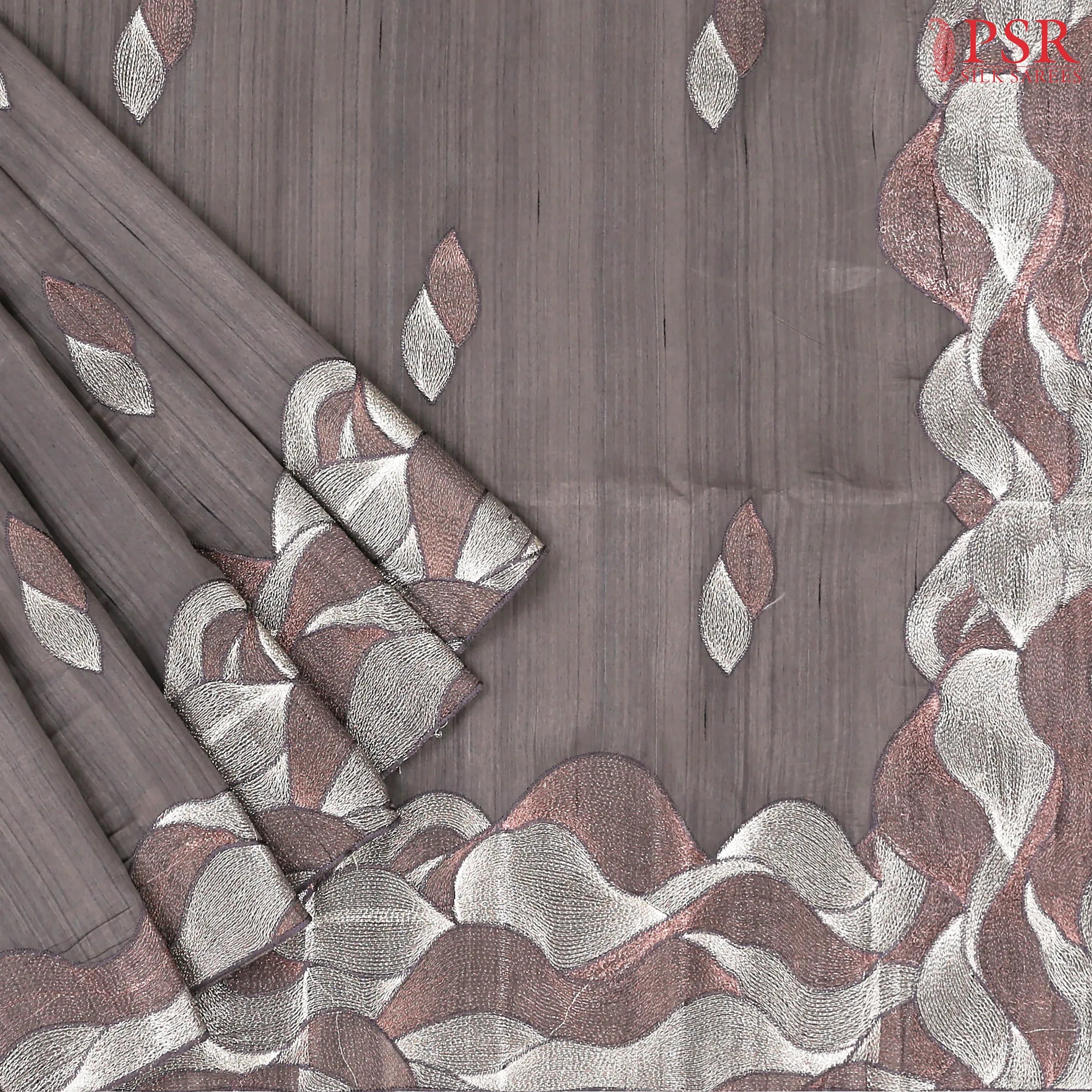 PSR Silk Sarees presents a Fossil Grey Kosa Embroidery Saree.