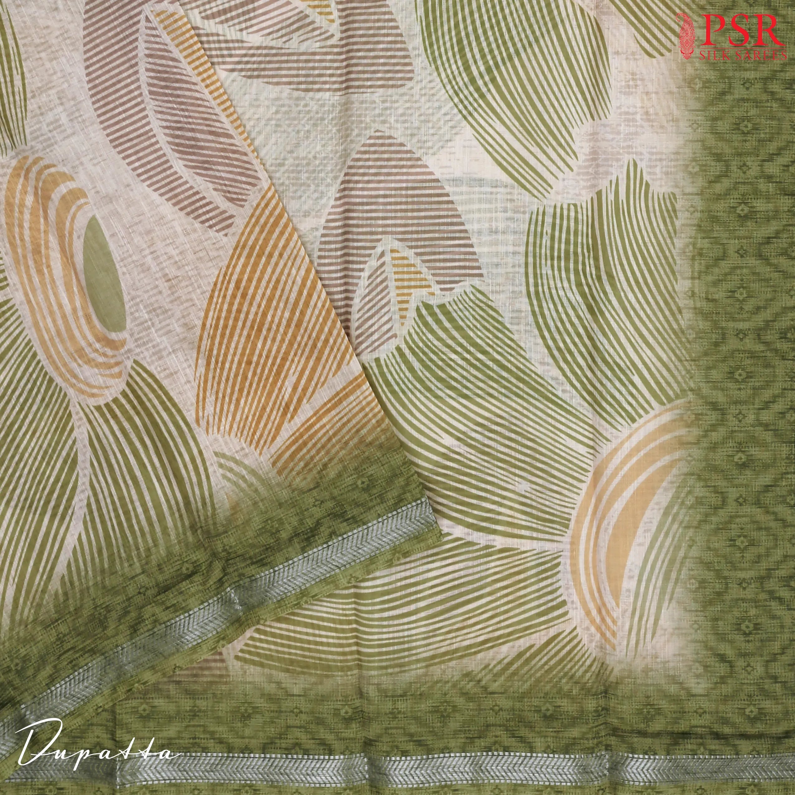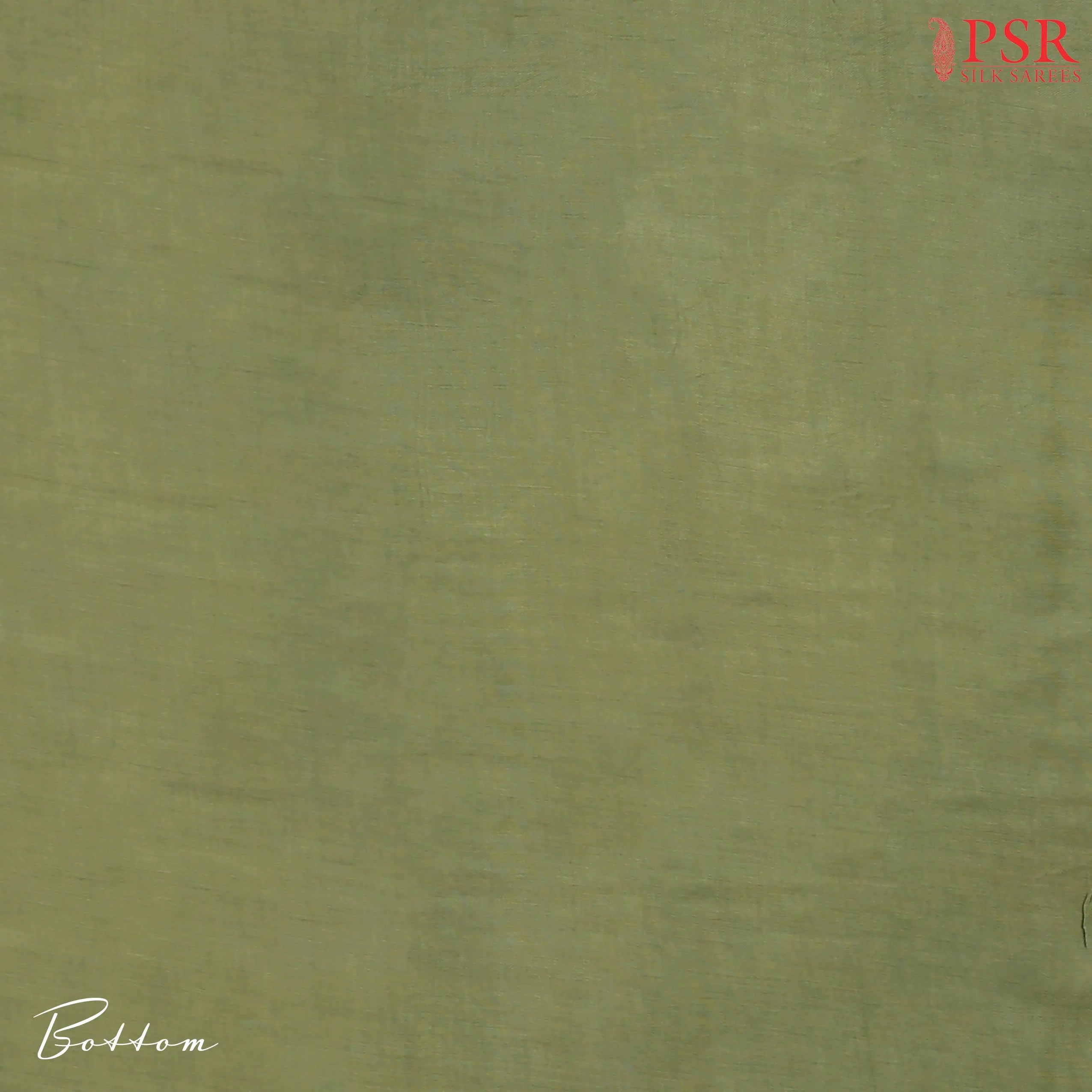 PSR Silks presents Olive Green Semi Tussar Dress Material.