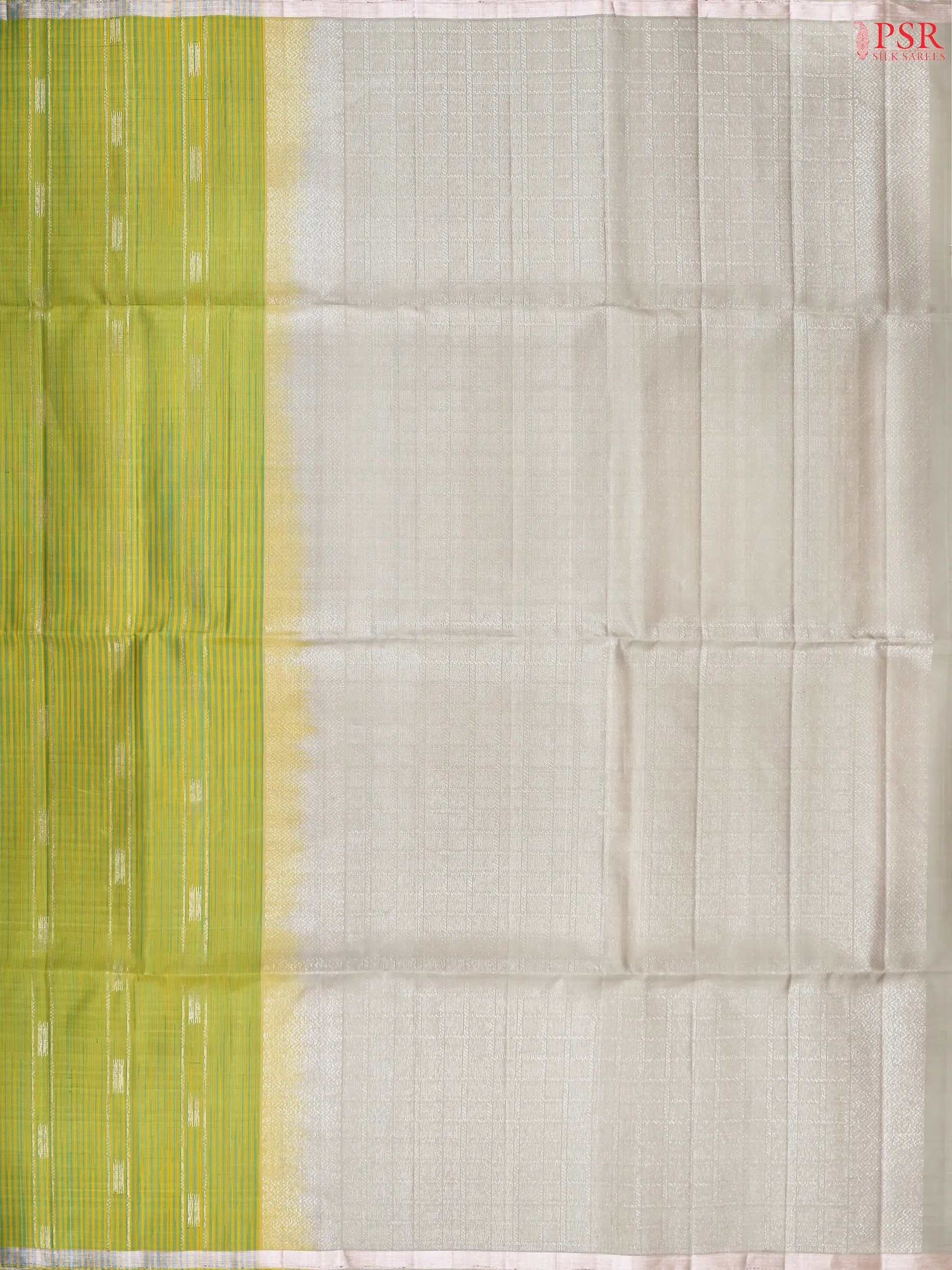 Green & Yellow Soft Silk Saree with Tussar Beige Contrast