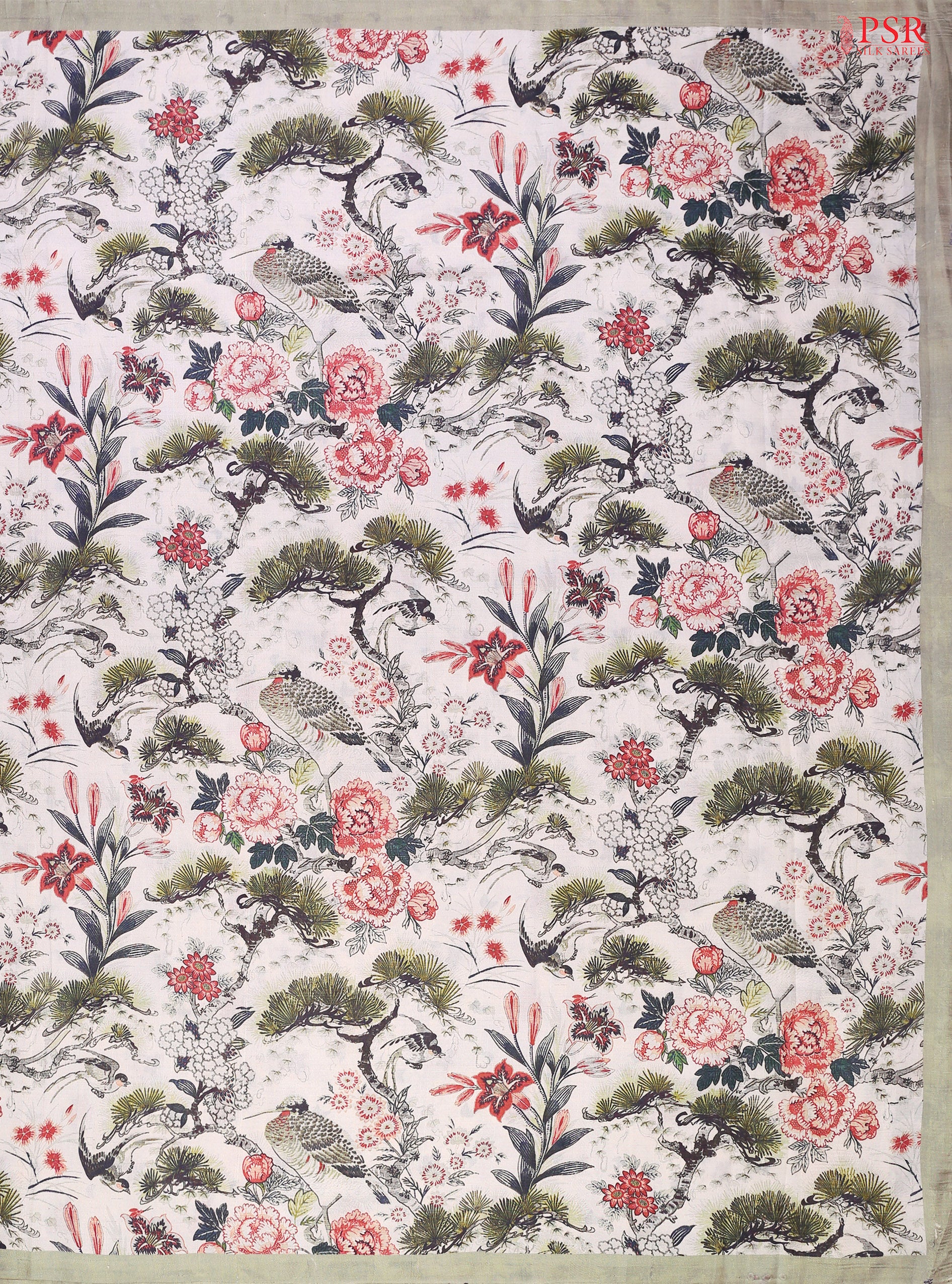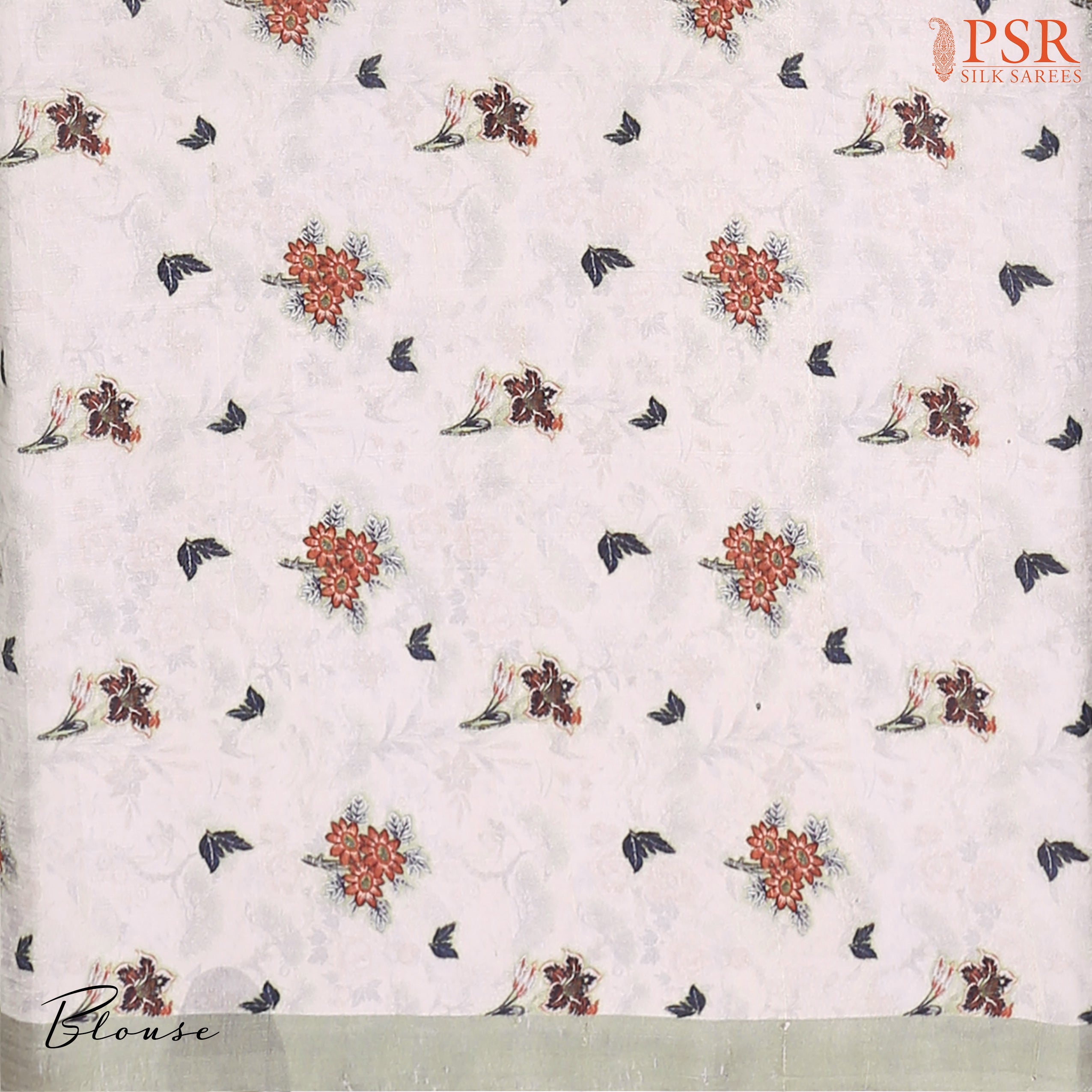 Discover the timeless elegance of our Classic Grey White Kadhi Soft Tussar Silk Saree, enhanced with a subtle touch of Olive Mint. This exquisite saree features delicate Chintz prints, exuding vintage-inspired sophistication. Paired with a tiny Olive Mint pallu and border, it’s a perfect blend of grace and simplicity. Completing the ensemble is a matching blouse adorned with elegant floral prints, making it a versatile and chic choice for any occasion.