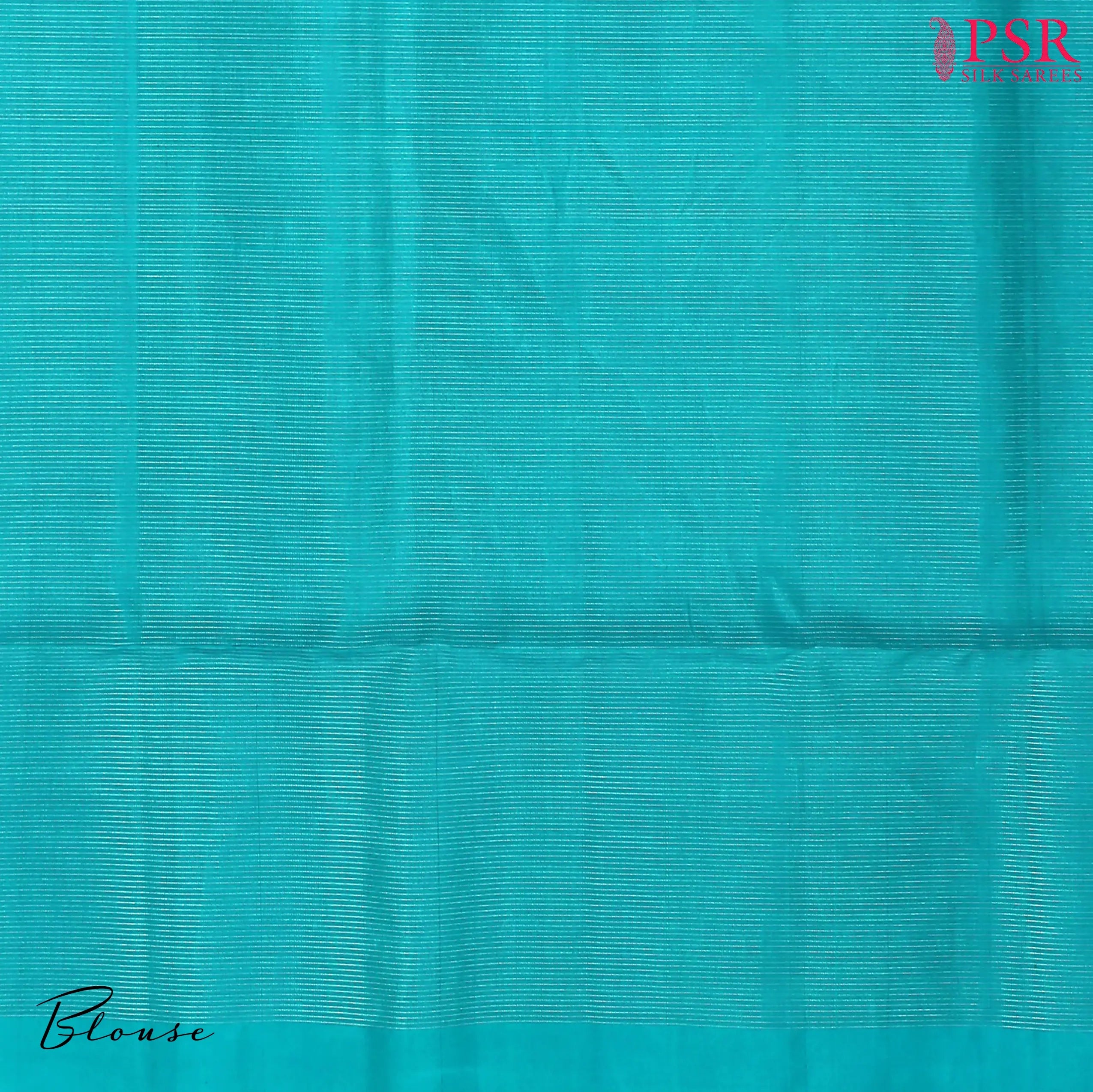 It is enhanced with a Turquoise Cyan traditional zari work pallu and border, striking the perfect balance between tradition and sophistication. The saree is paired with a plain Turquoise Cyan blouse, making it a versatile pick for any occasion.