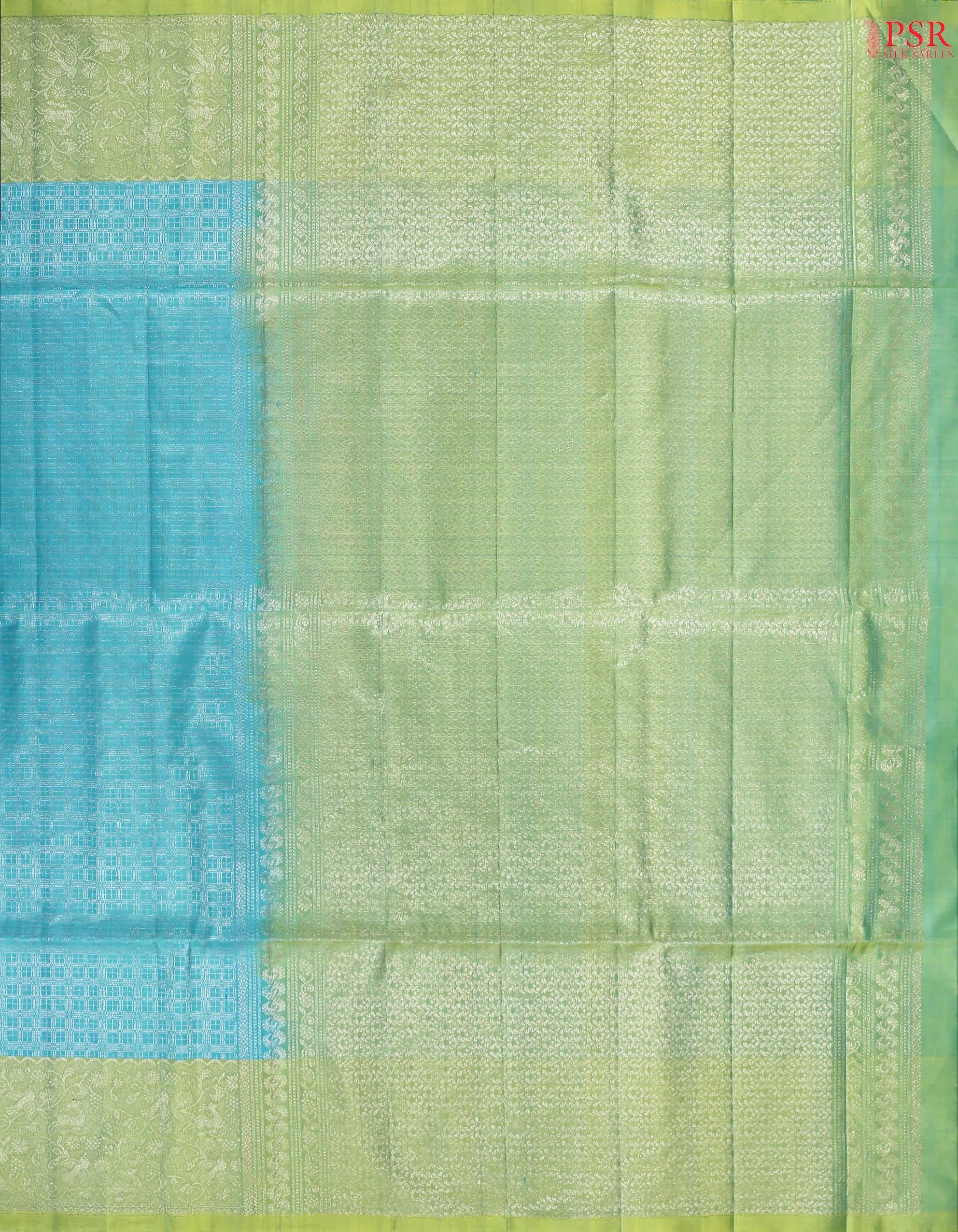 Light Blue & Light Green Soft Silk Saree with Silver Zari Stripes – PSR Silk Sarees