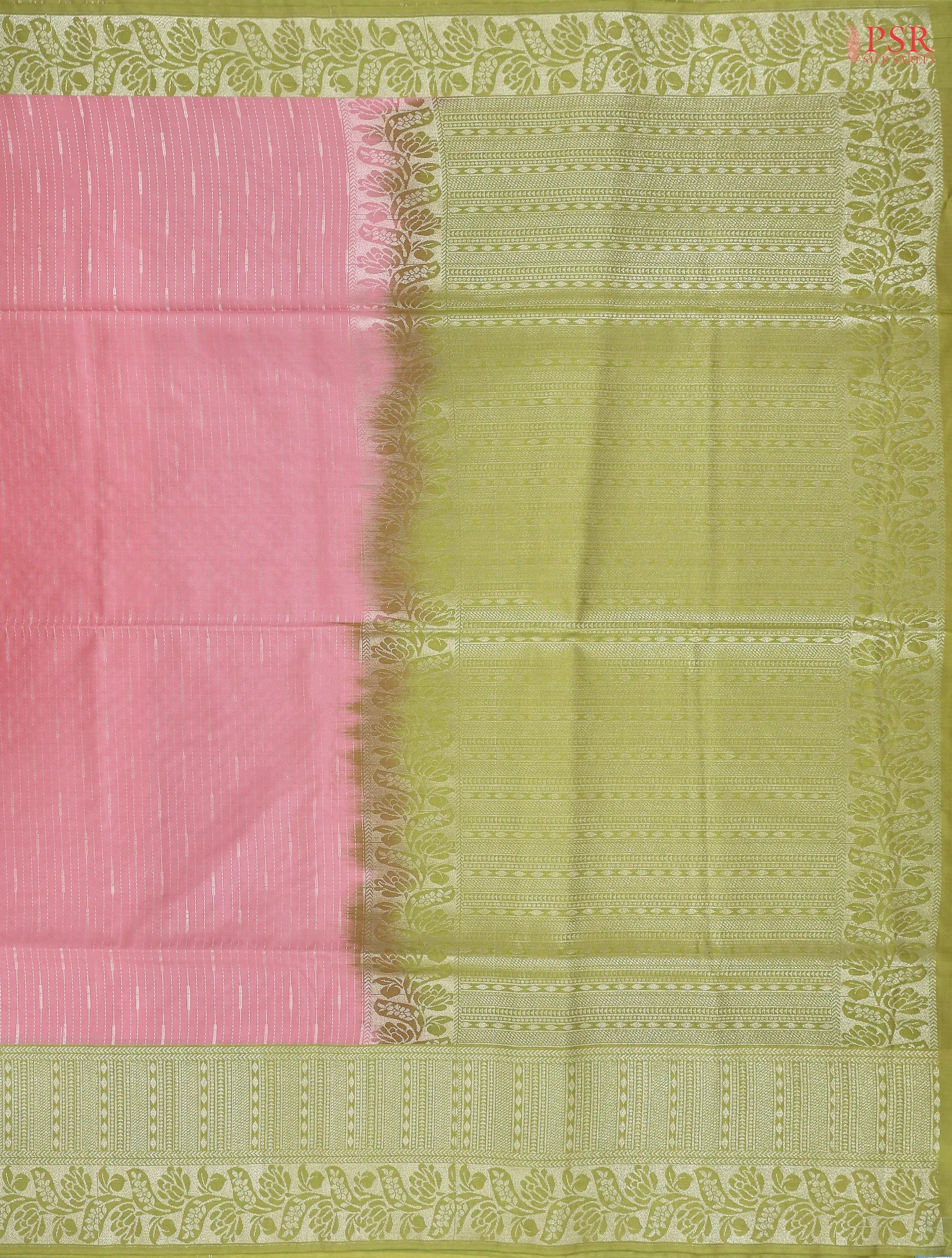 PSR Silk Sarees presents a Light Pink Soft Art Silk saree with combination of Pear Green color.