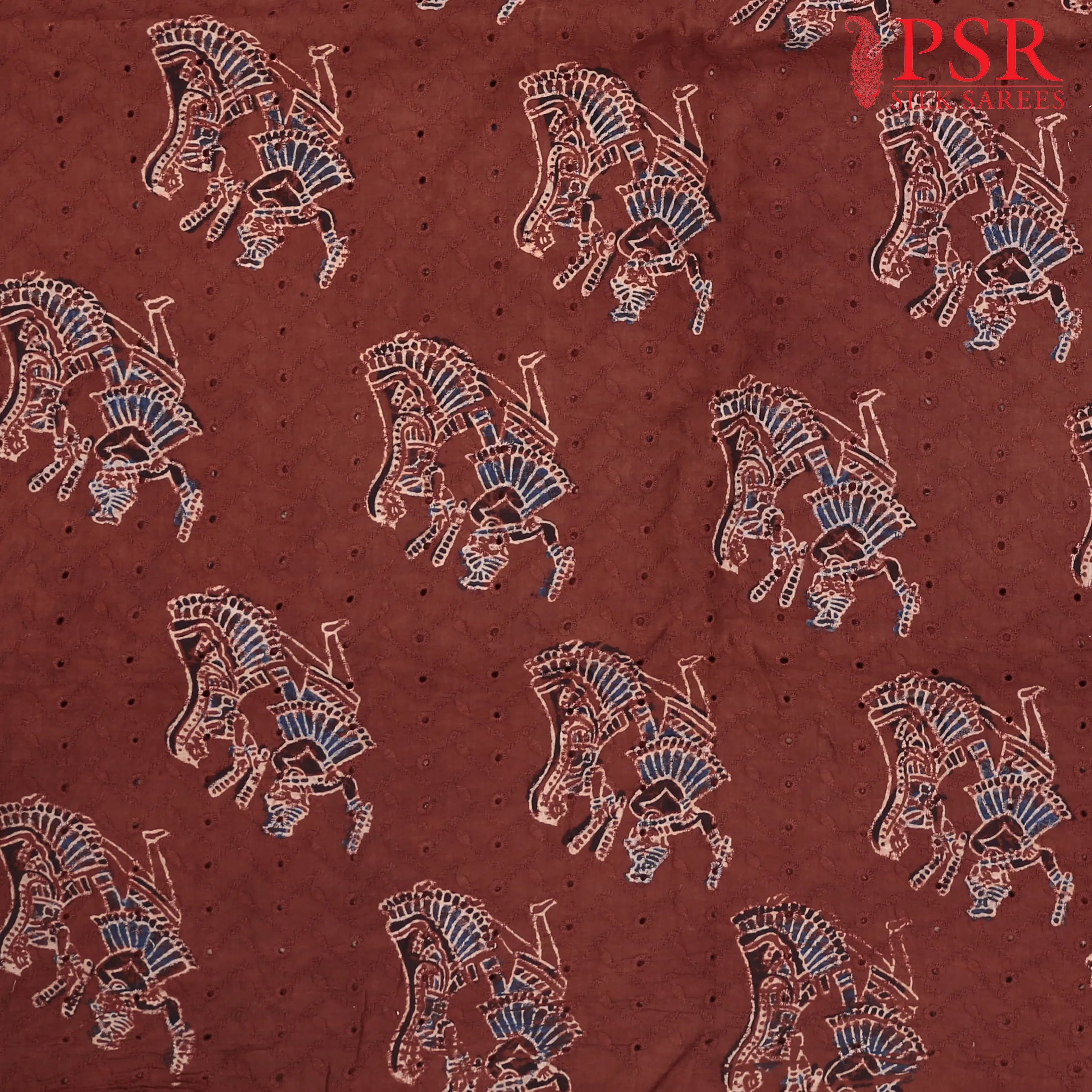 PSR Silk Sarees presents a Maroon Hacoba Embroidery Running Material with Dhandia prints