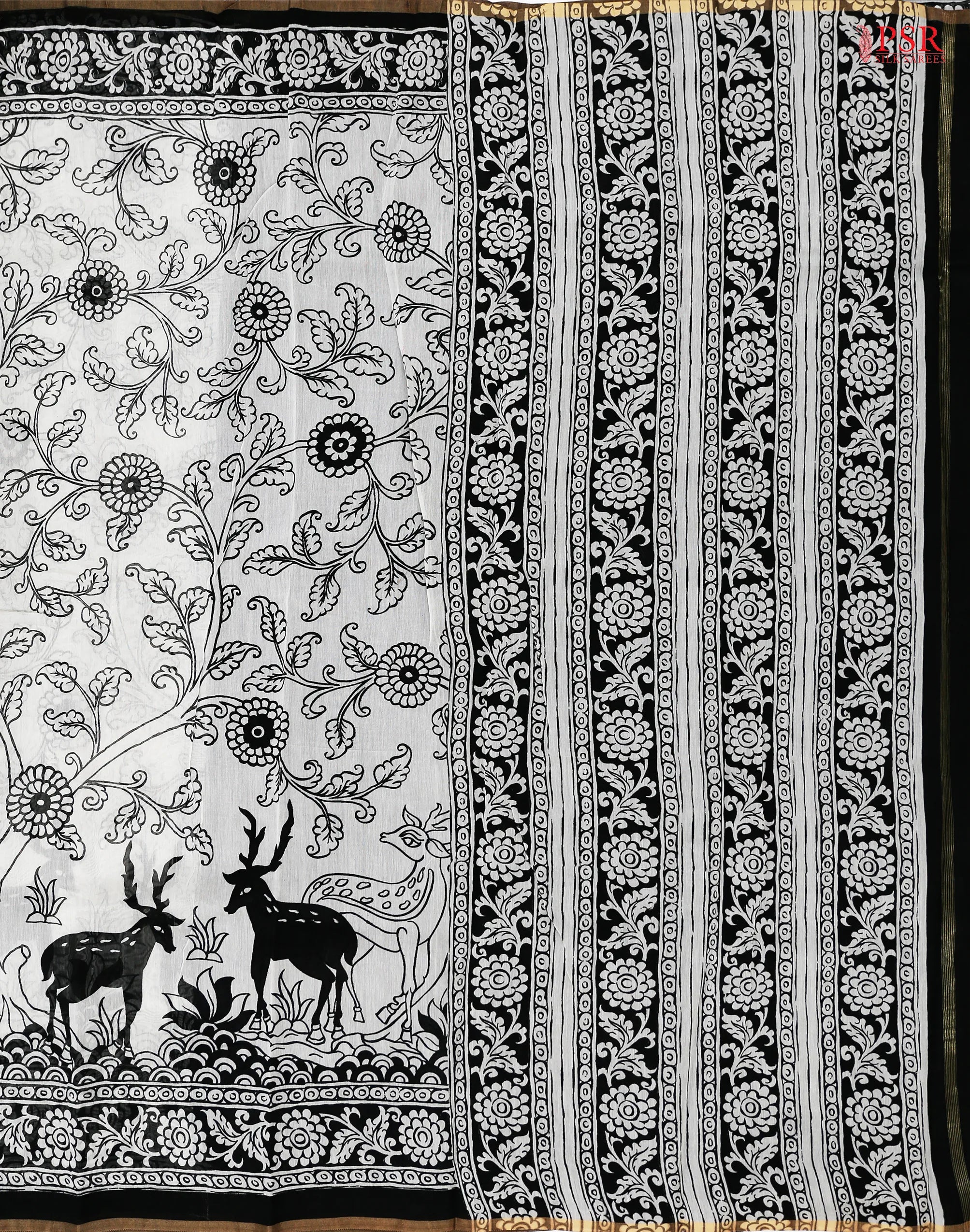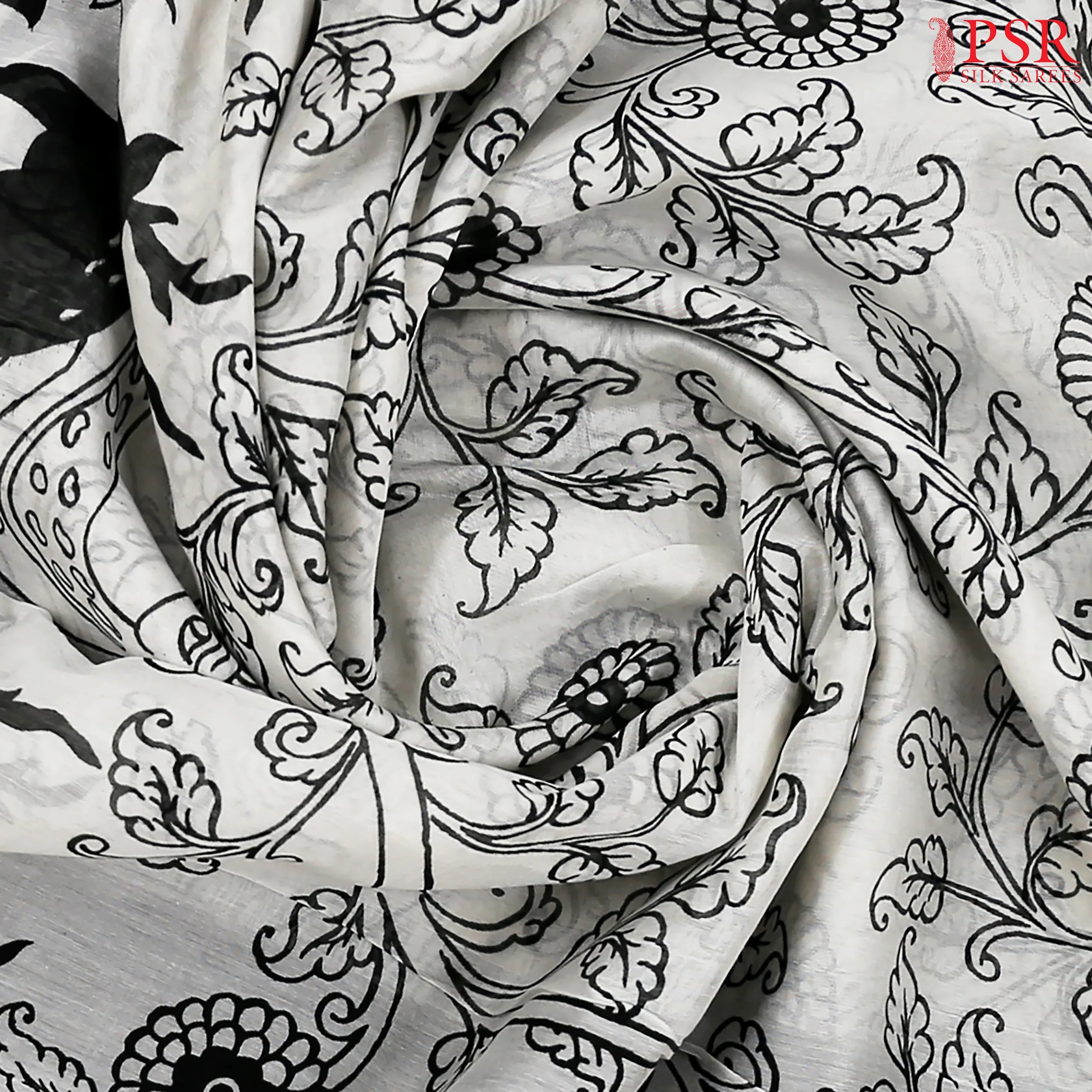 PSR Silk Sarees presents an Off White & Black colored Silk Cotton saree.