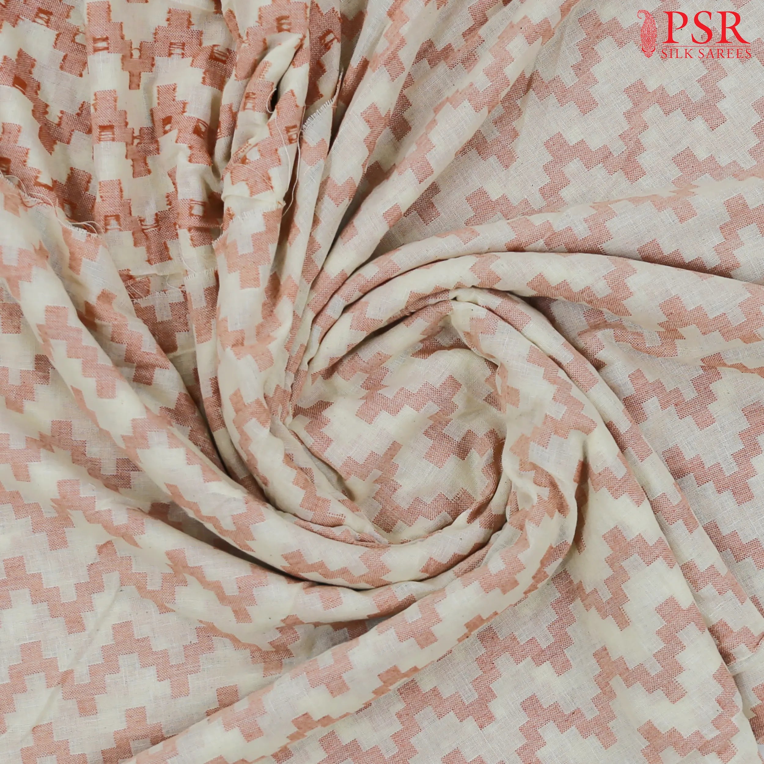 PSR Silk Sarees presents a Off White colored Cotton Dobby Running Material with Light Red chevron stripes,