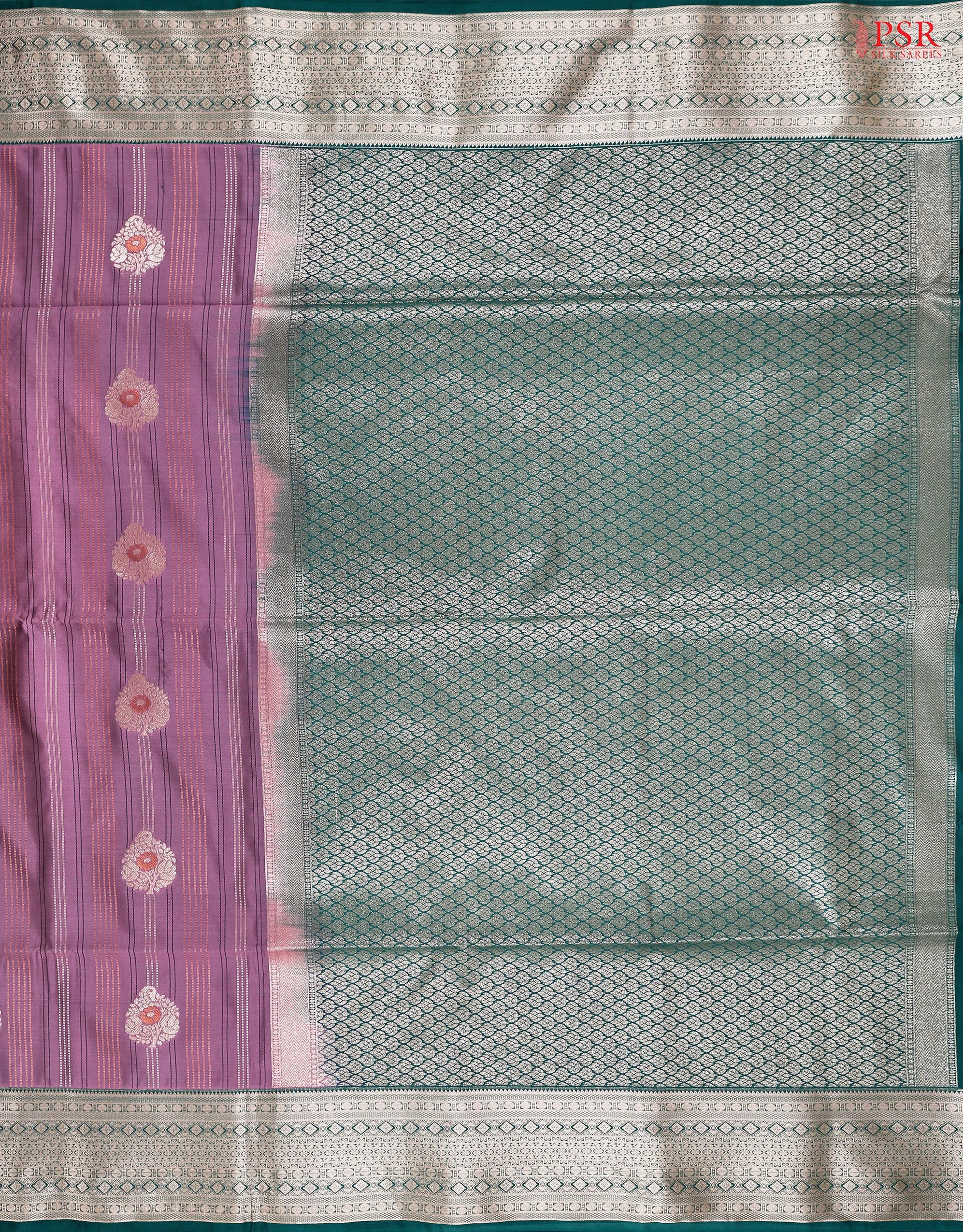 PSR Silk Sarees presents a Onion Purple Soft Art Silk saree with combination of Persian Green color.