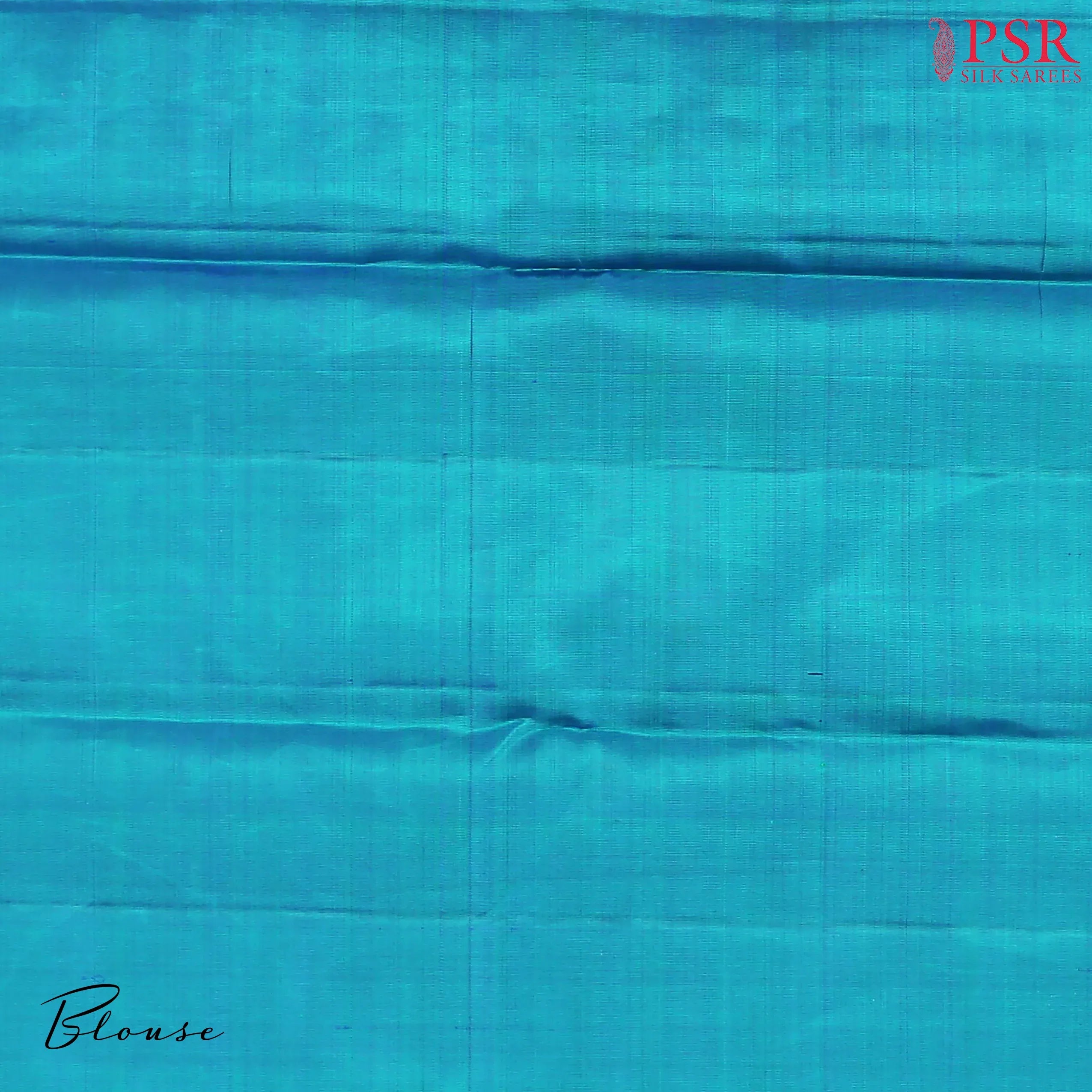 PSR Silk Sarees presents a Peacock Blue Kanchipuram Silk Saree.