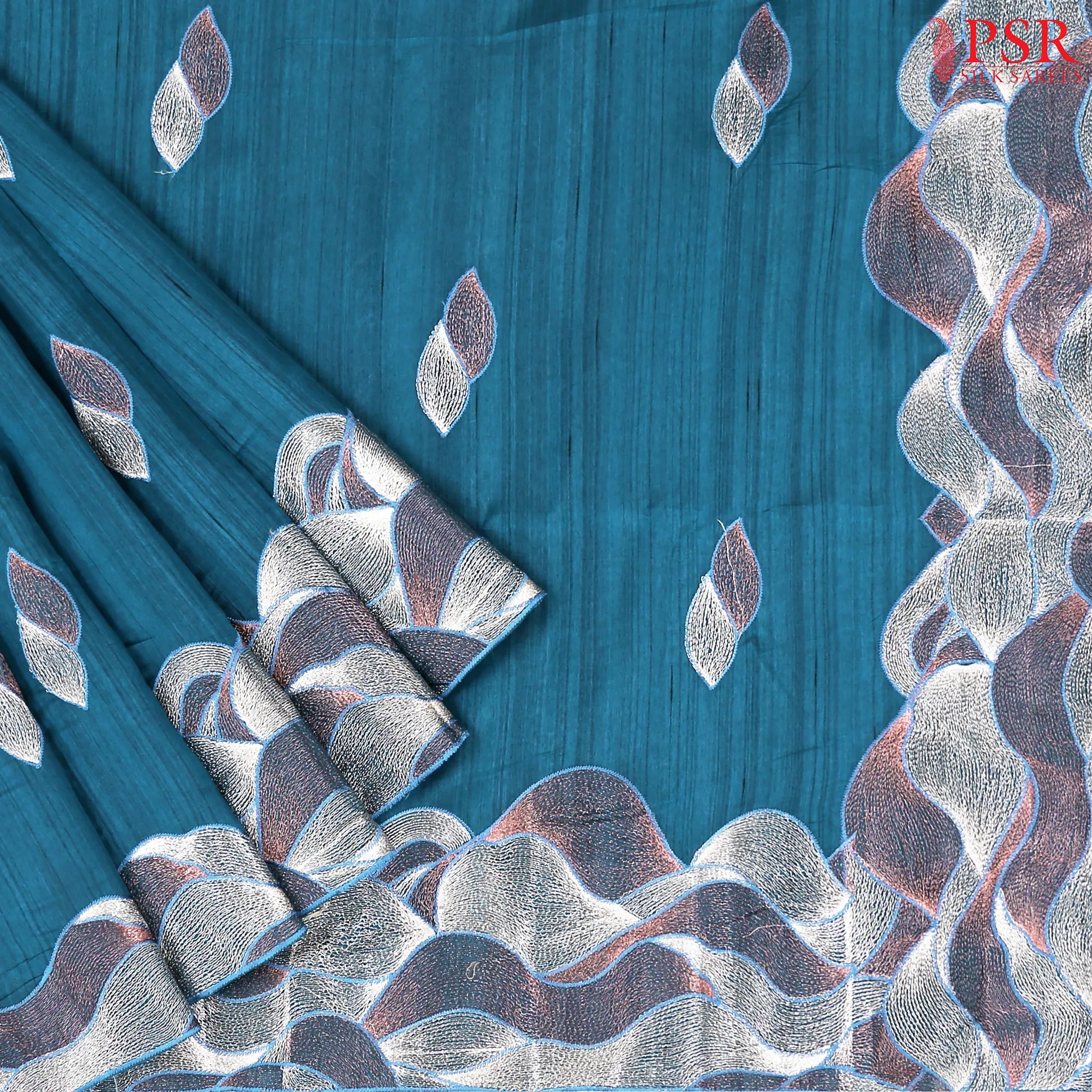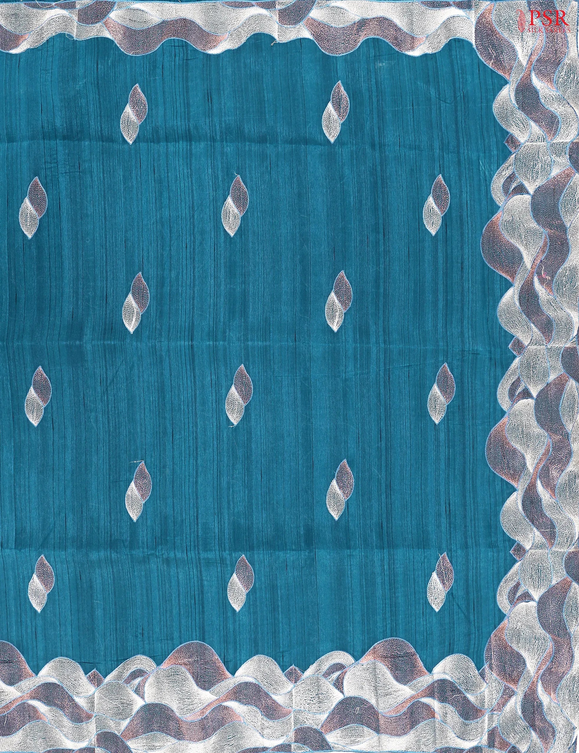 PSR Silk Sarees presents a Peacock Blue Kosa Embroidery Saree.