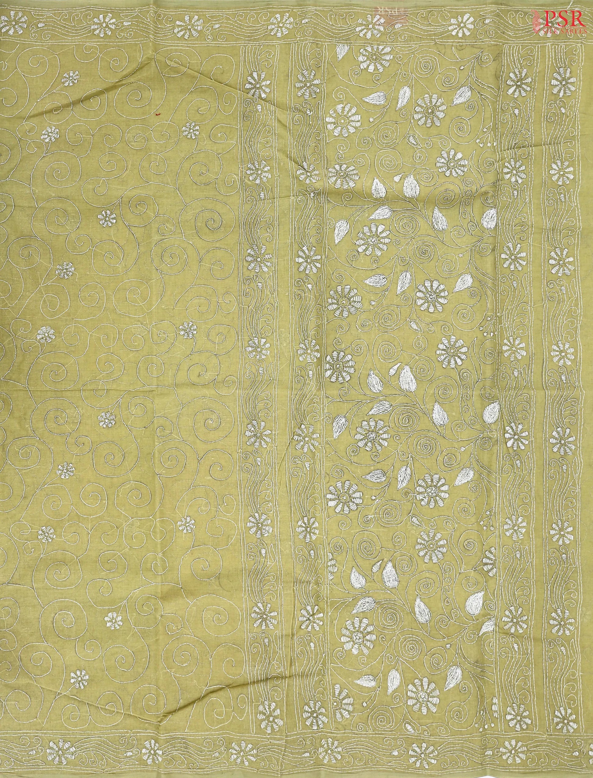 PSR Silk Sarees presents a Pomelo Olive colored Bengal Cottton saree.