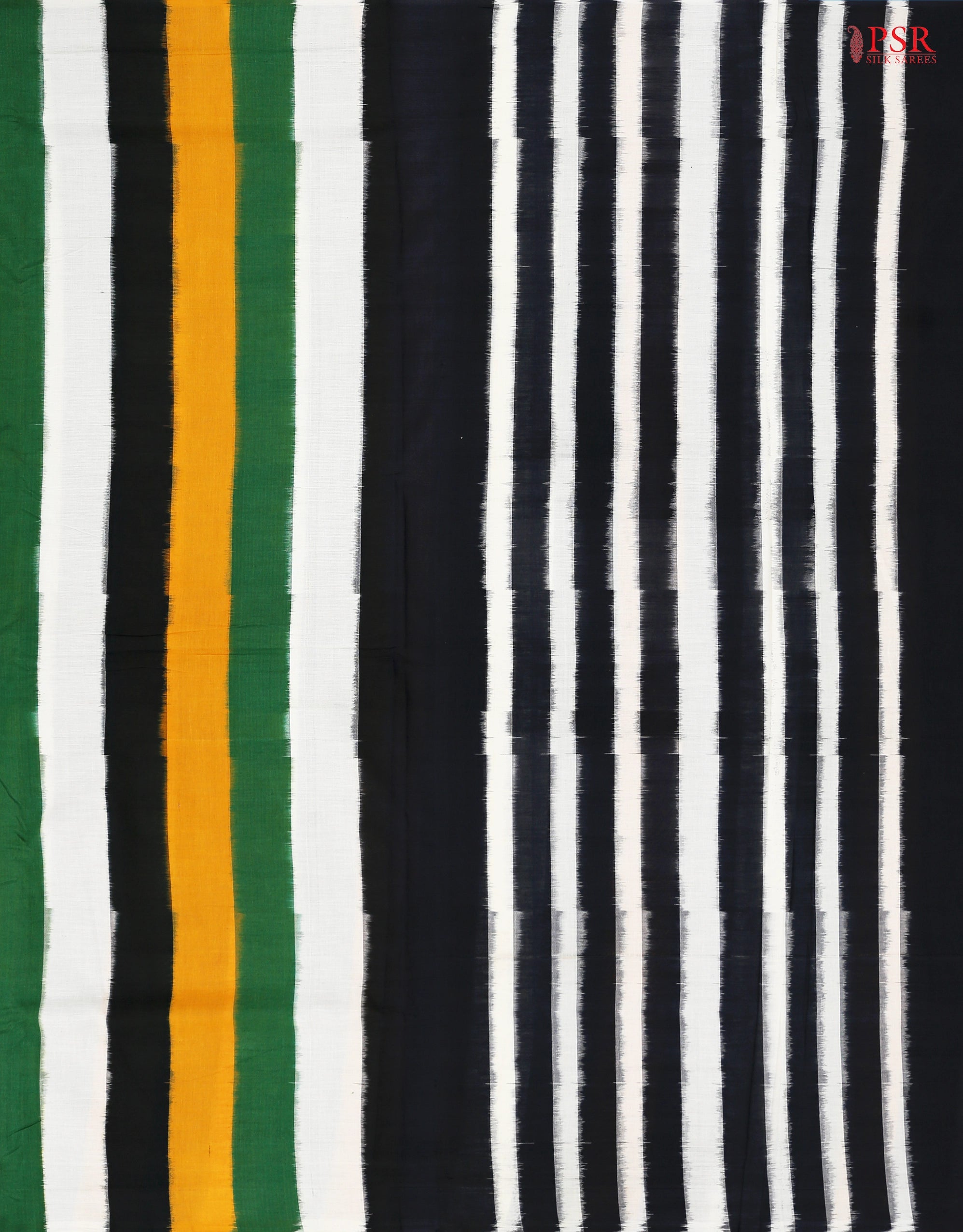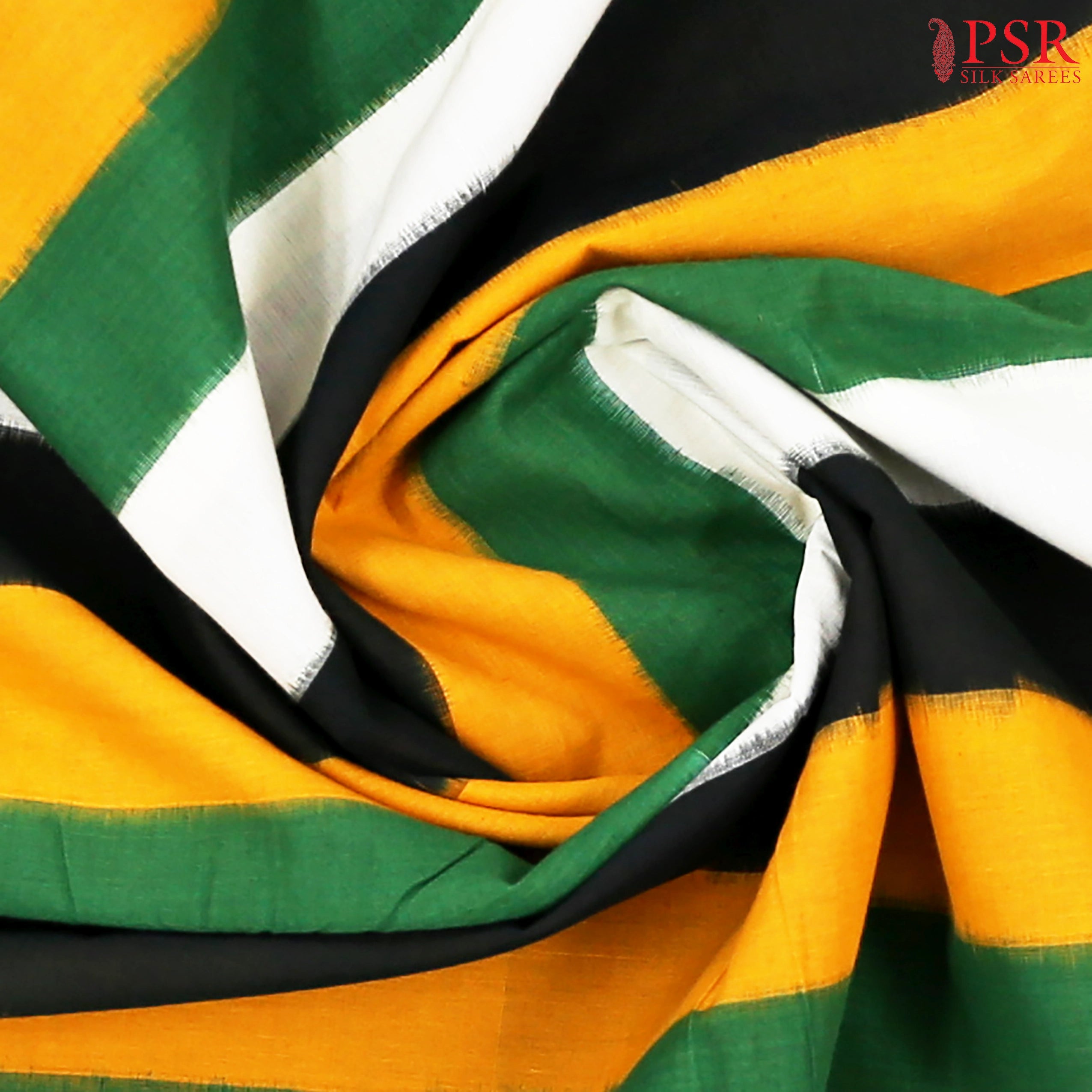 PSR Silk Sarees presents a Quadricolor (Mustard Yellow,Dark Green,Off White & Black) colored Ikkat cotton saree.