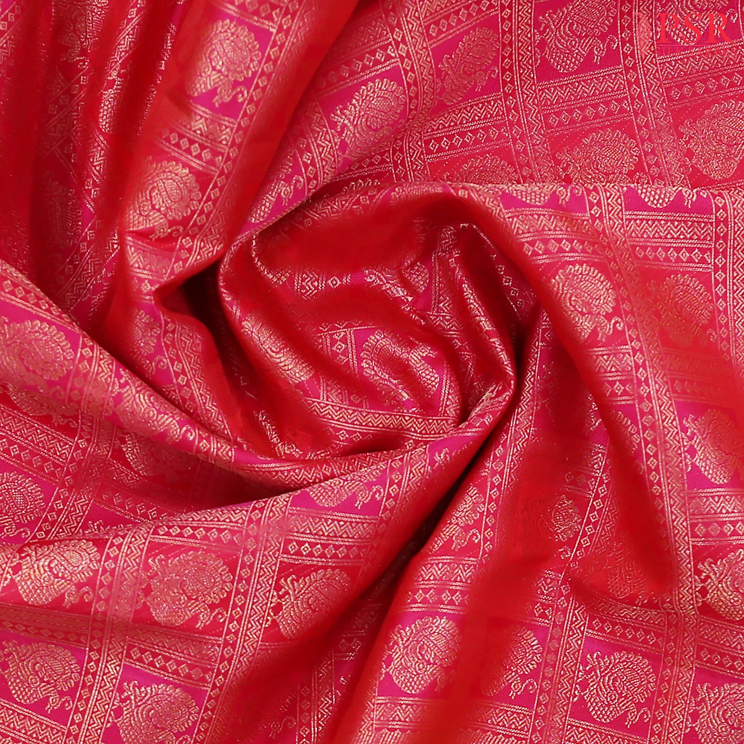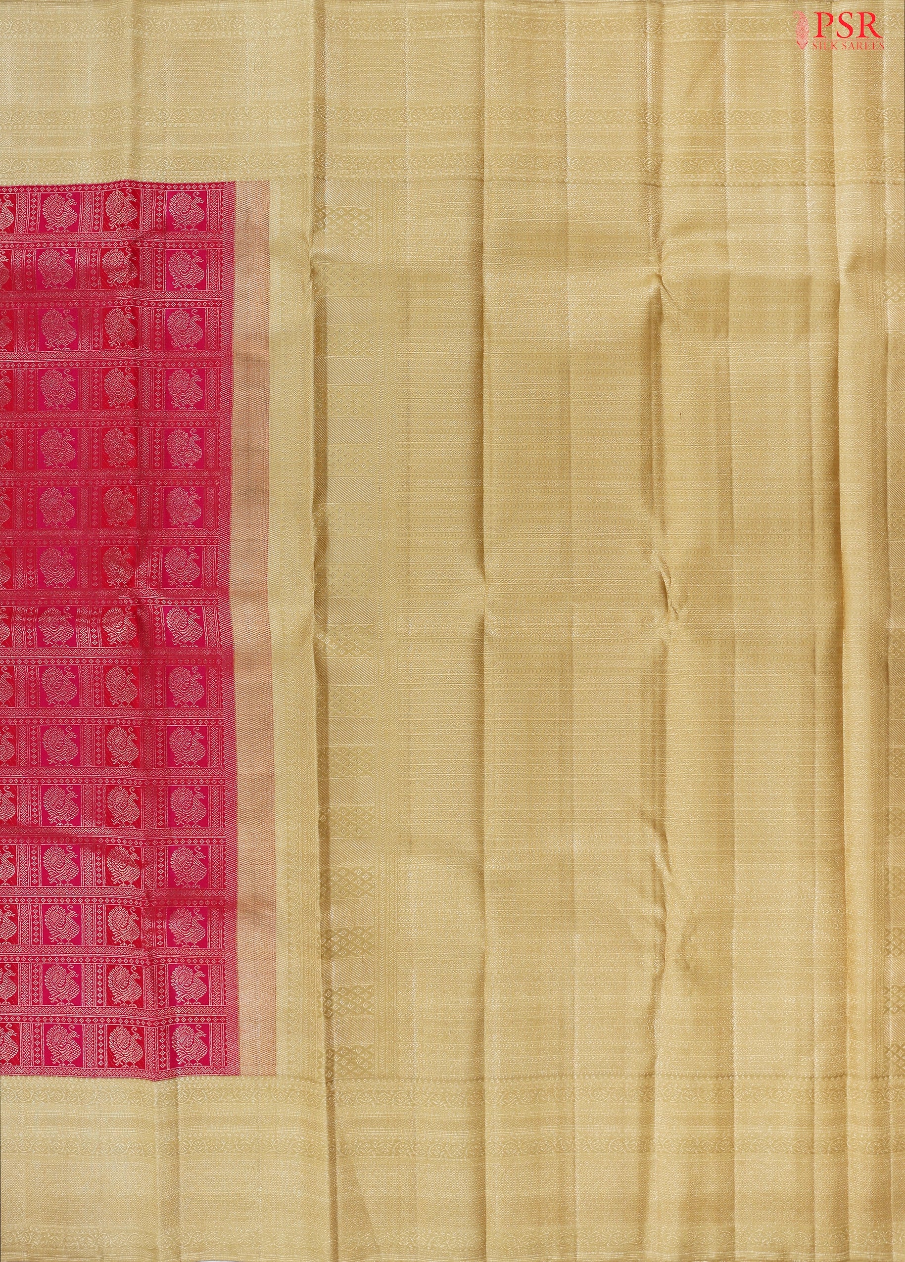 Red And Pink Bridal Kanchipuram Silk Saree with Flax Yellow Zari Pallu – PSR Silk Sarees