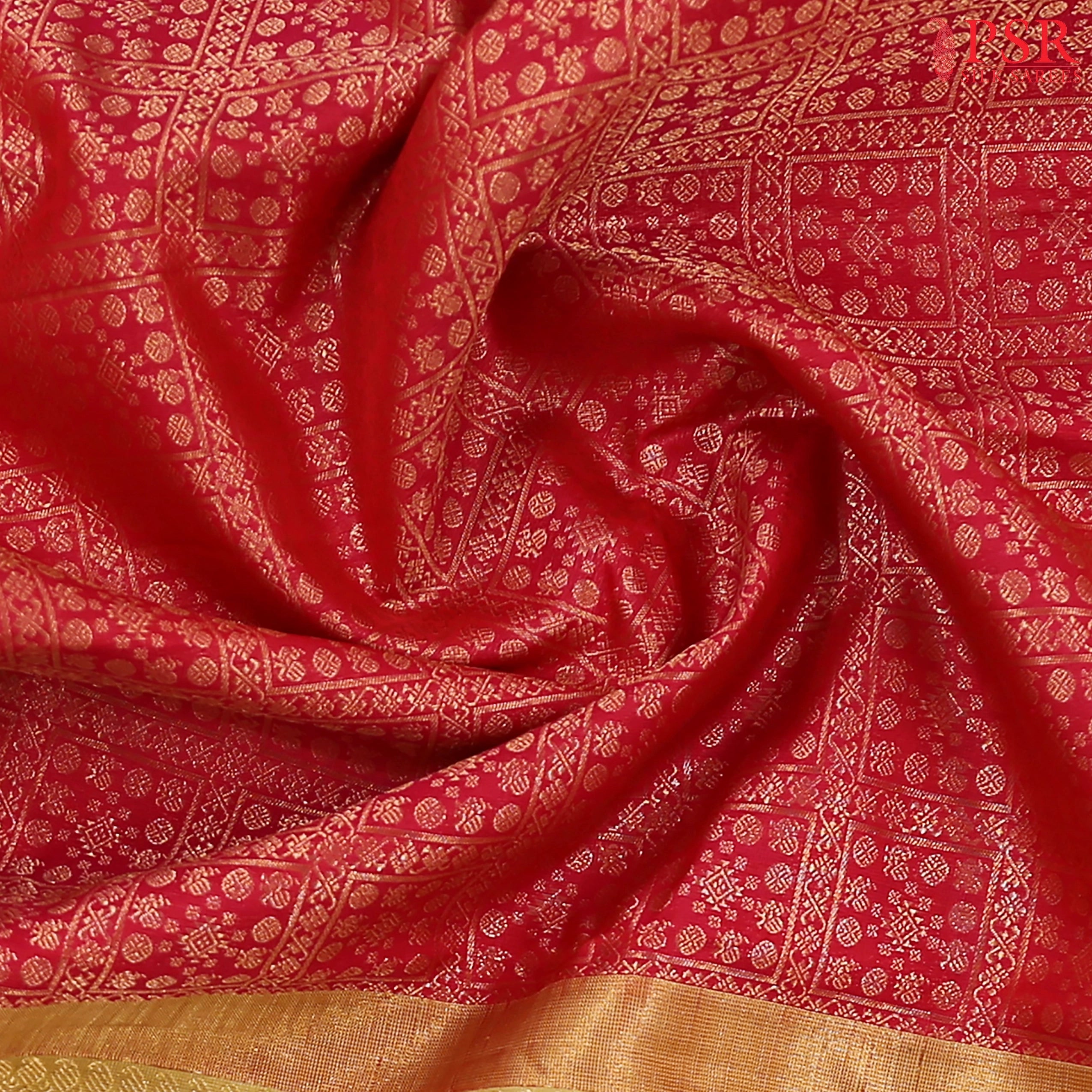 Red Bridal Kanchipuram Silk Saree with Flax Yellow Zari Pallu – PSR Silk Sarees