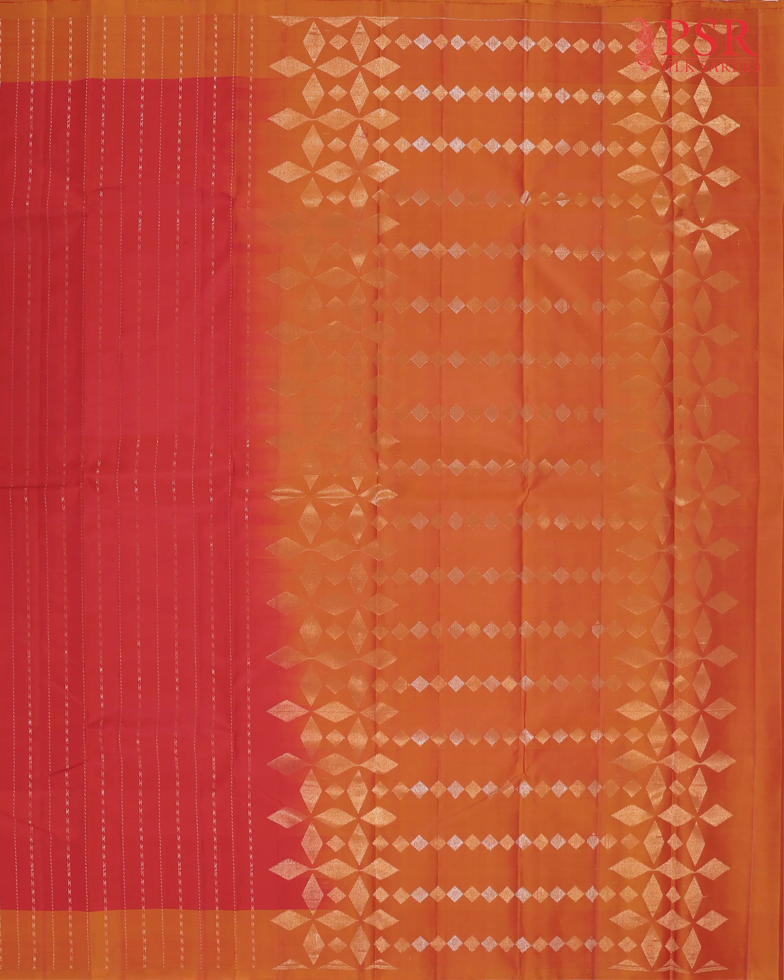 PSR Silk Sarees presents a Red colored Soft Silk saree with combination of Orange color.