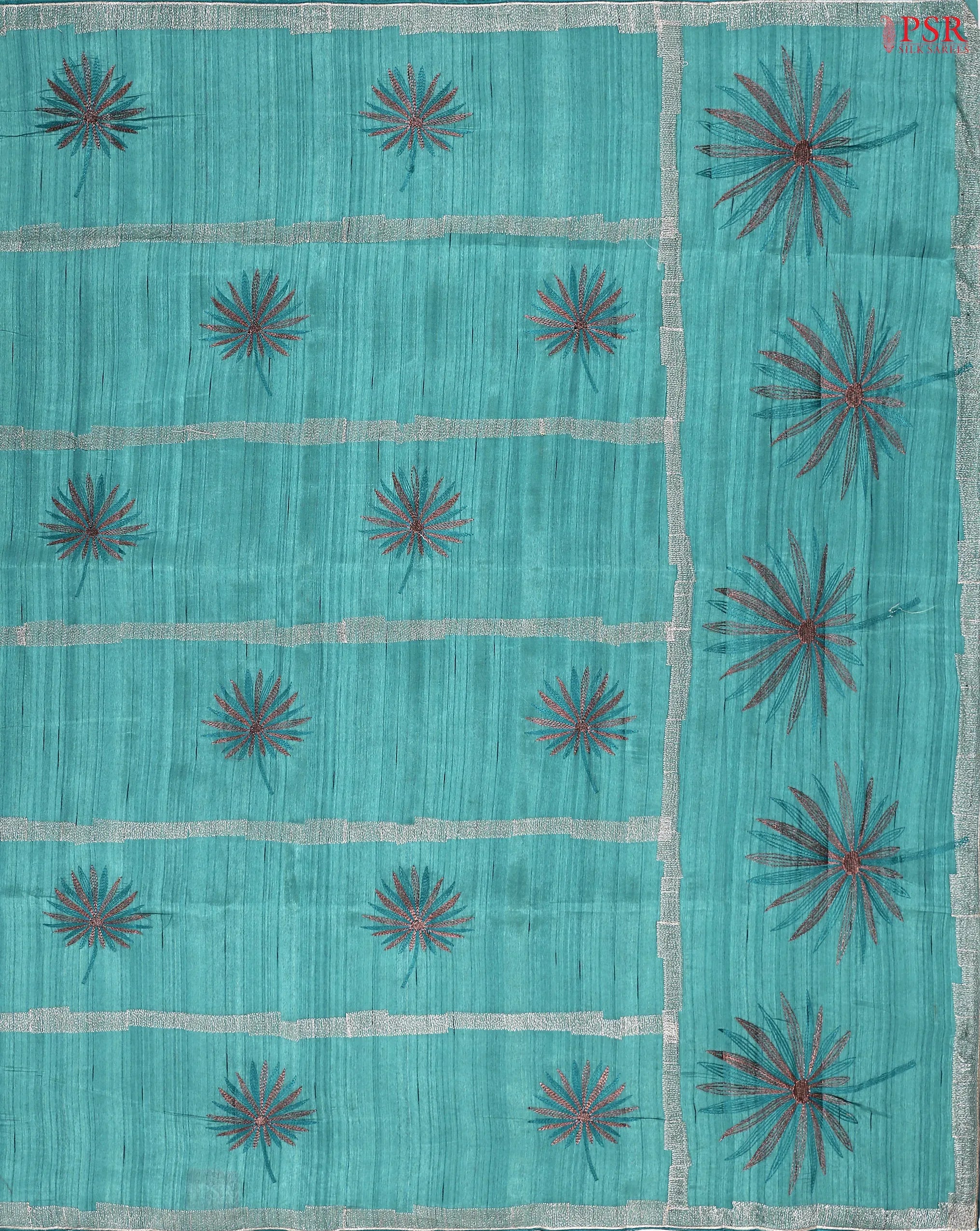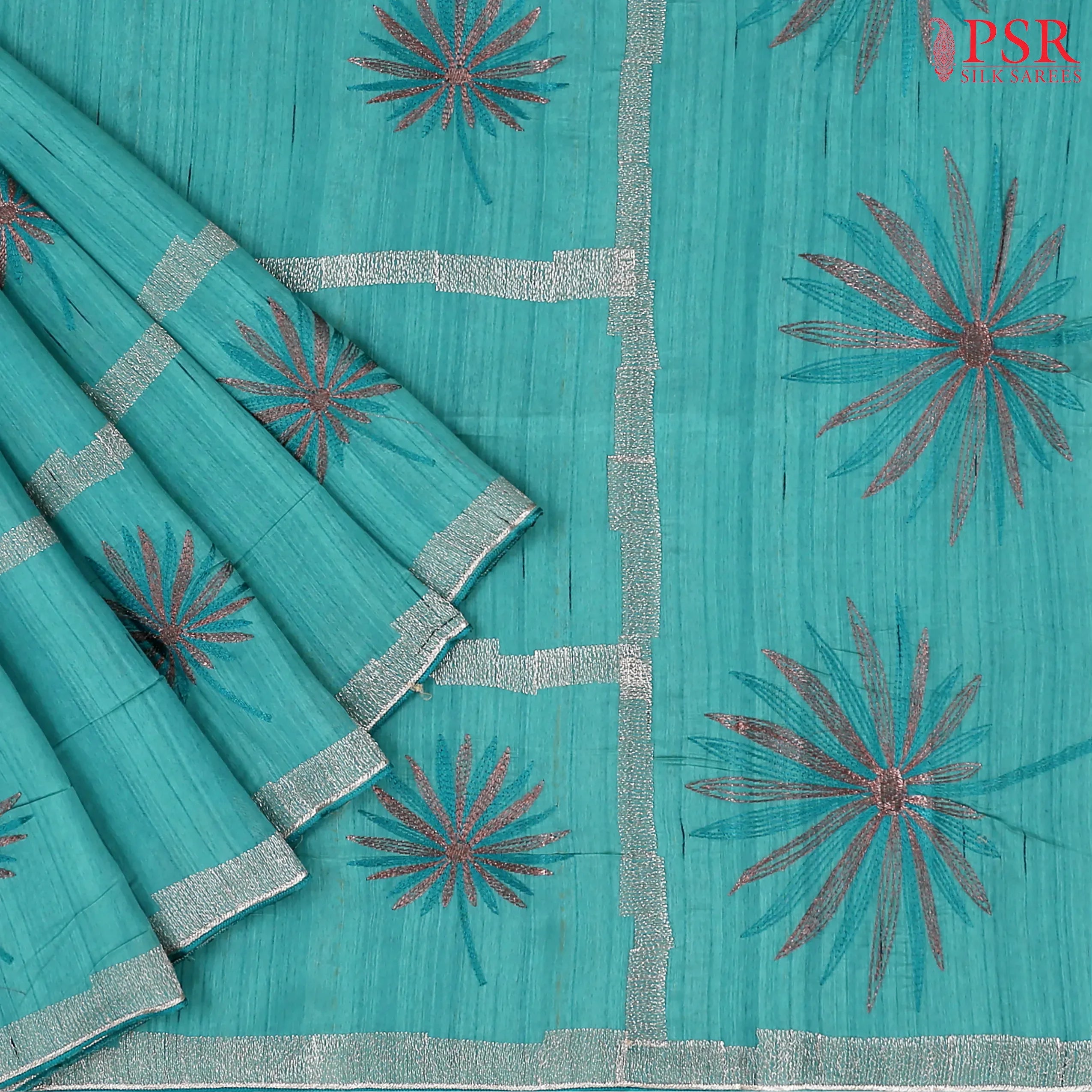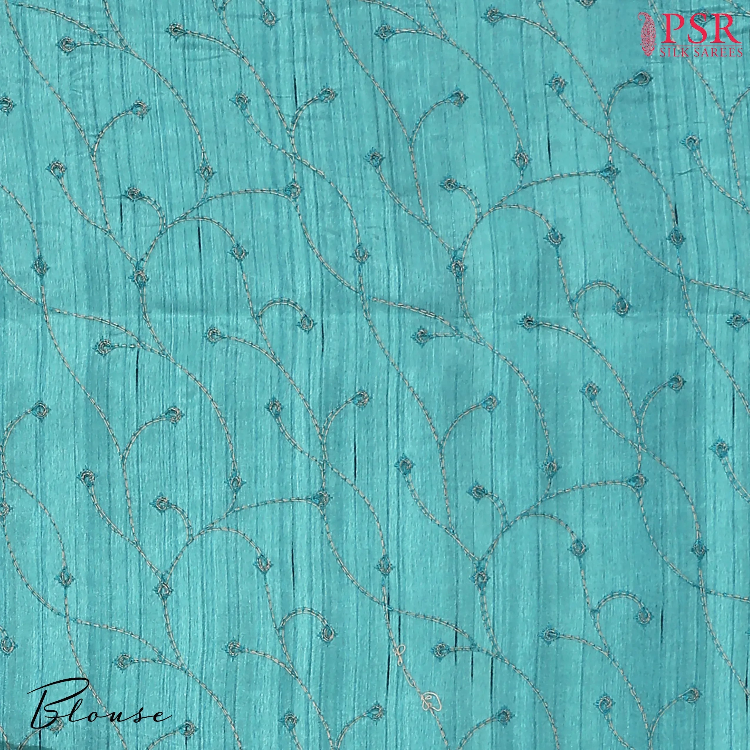 PSR Silk Sarees presents a Robin Egg Blue Kosa Embroidery Saree.