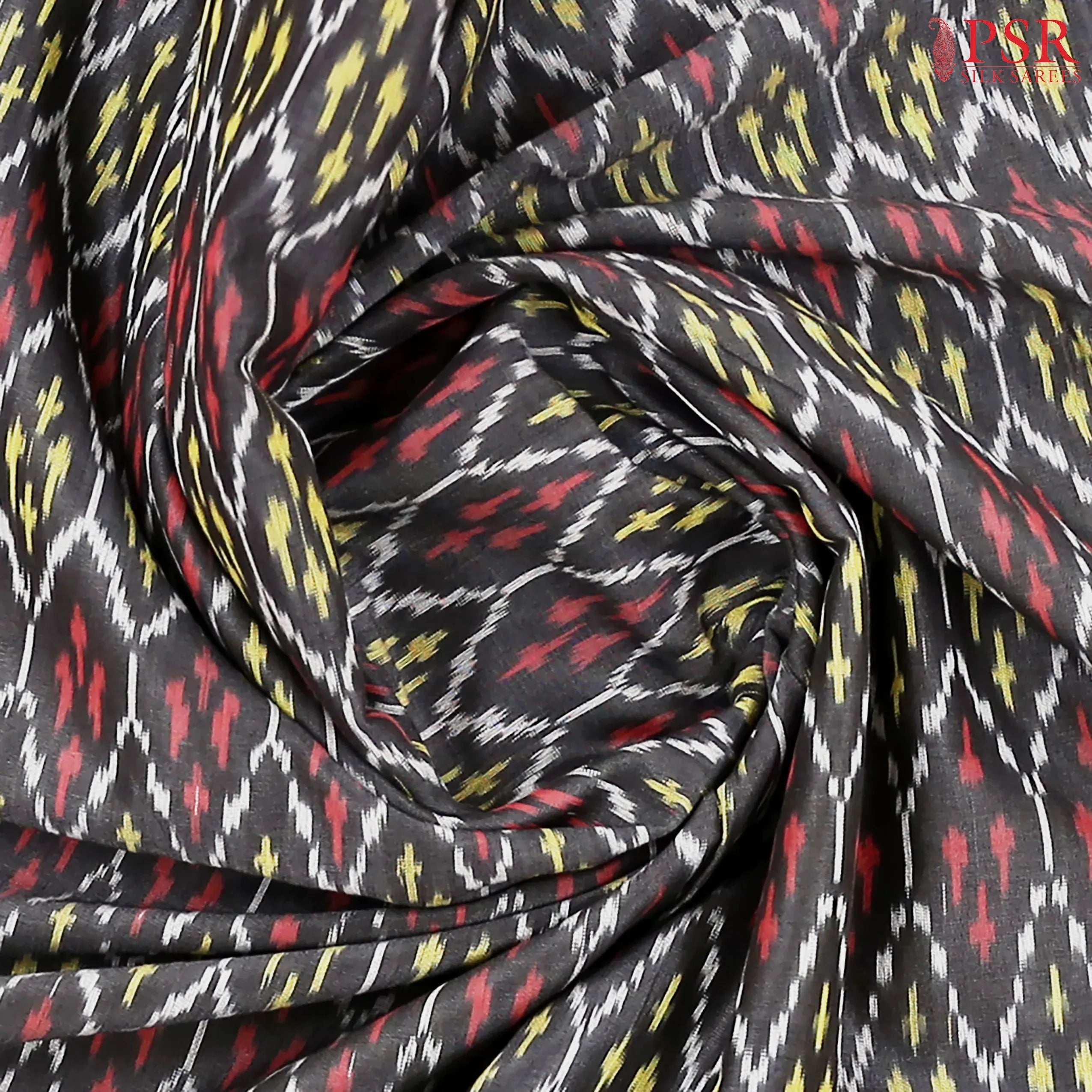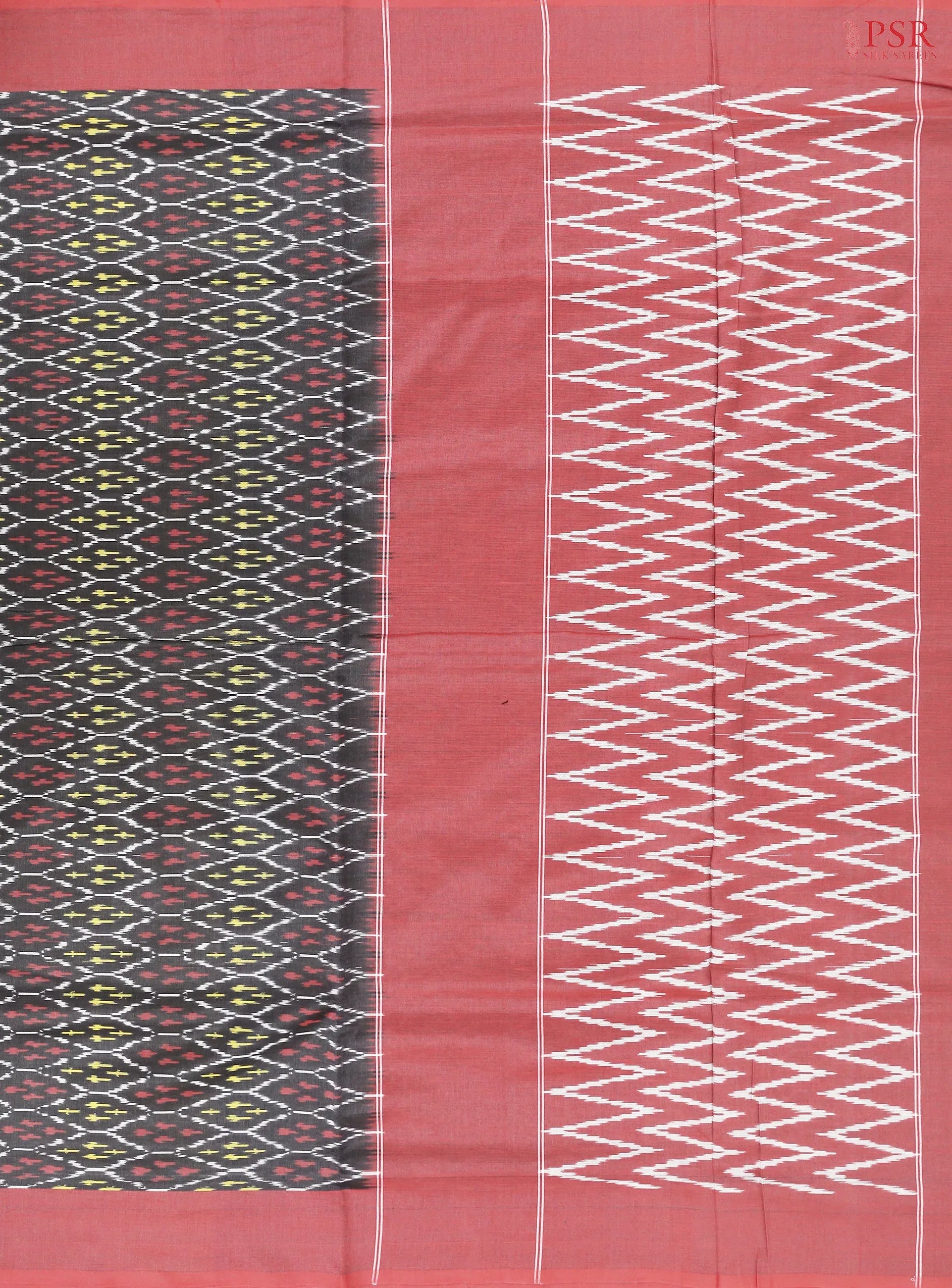 PSR Silk Sarees presents a Shadow Black colored Ikkat cotton saree with combination of Dark Red color.